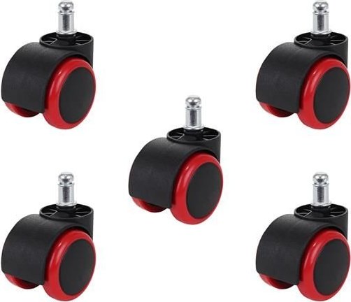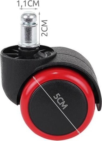 Kolečka určená pro kancelářské, hráčské, otočné nebo psací židle, vyhovují většině tuzemských i zahraničních výrobců s průměrem vřetena 11 mm. Použití pryže zajistí, že podlaha není vystavena poškrábání a koberec zůstává neporušený. Není potřeba používat ani speciální podložky, které se nedají snadno čistit a po nějaké době vypadají nevzhledně. Dvojitá kola zajišťují ochranu povrchu, a pohyb po nich je tichý a pohodlný. Kolečka nekloužou, takže při pohybu jsme schopni plně ovládat směr a intenzitu pohybu. Montáž je velmi rychlá a snadná - stačí stisknout čep a zacvaknout. Sada obsahuje 5 koleček s průměrem 5 cm.
