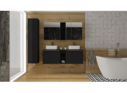 Kolekce nábytku do koupelny Santano Black je jedna z mála kolekcí, která zdařile spojuje moderní vzhled s černými odstíny. Korpusy v elegantní černé matné barvě s čely v černém dekoru "Black Orchid" s minimalistickými hliníkovými madly v chromovém provedení tvoří vyvážený celek, který se stane dominantou každé moderní koupelny.