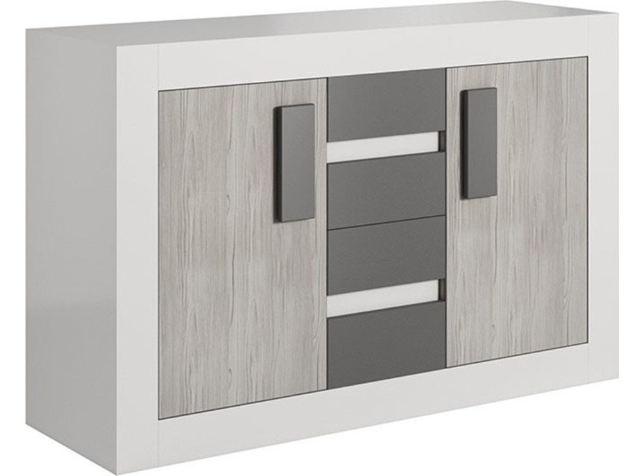 Komoda HELIOS je vybavena čtyřmi hlubokými šuplíky a dvěma skříňkami s policí uvnitř. Tato komoda nabízí dostatek místa pro oblečení, knihy, hračky nebo jiné předměty. Komoda má elegantní design v kombinaci břízy kathult, bílé a šedé barvy. Jako dekorační prvek slouží dřevěné rukojeti.
