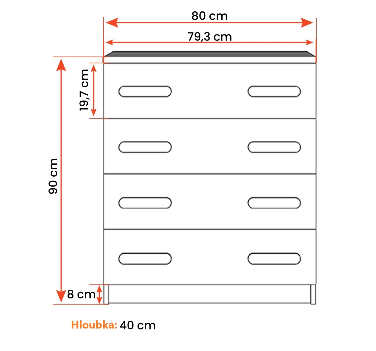 - barva: korpus - dub sonoma, čela šuplíků - bílá, úchytky - 8 variant