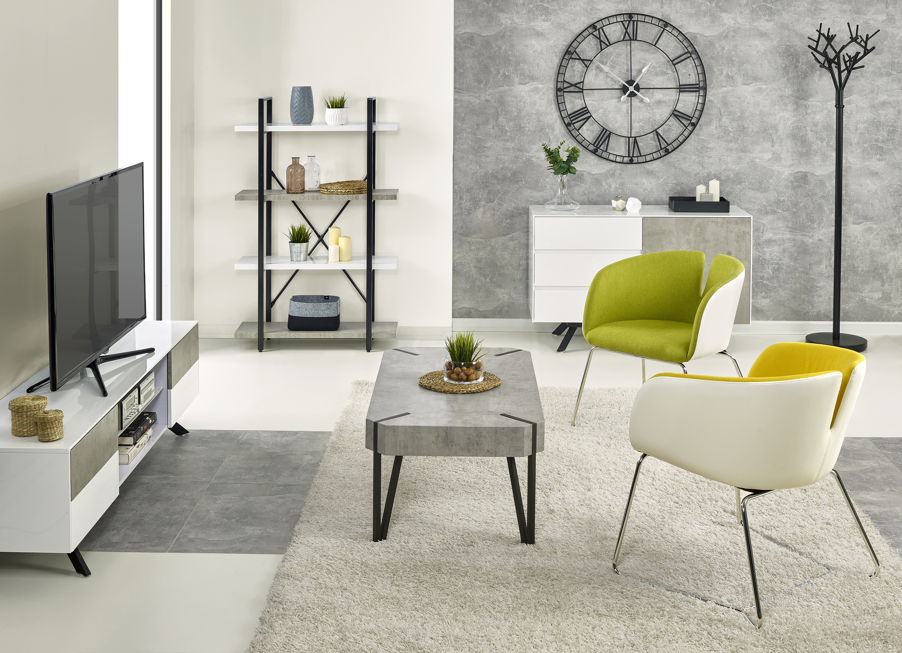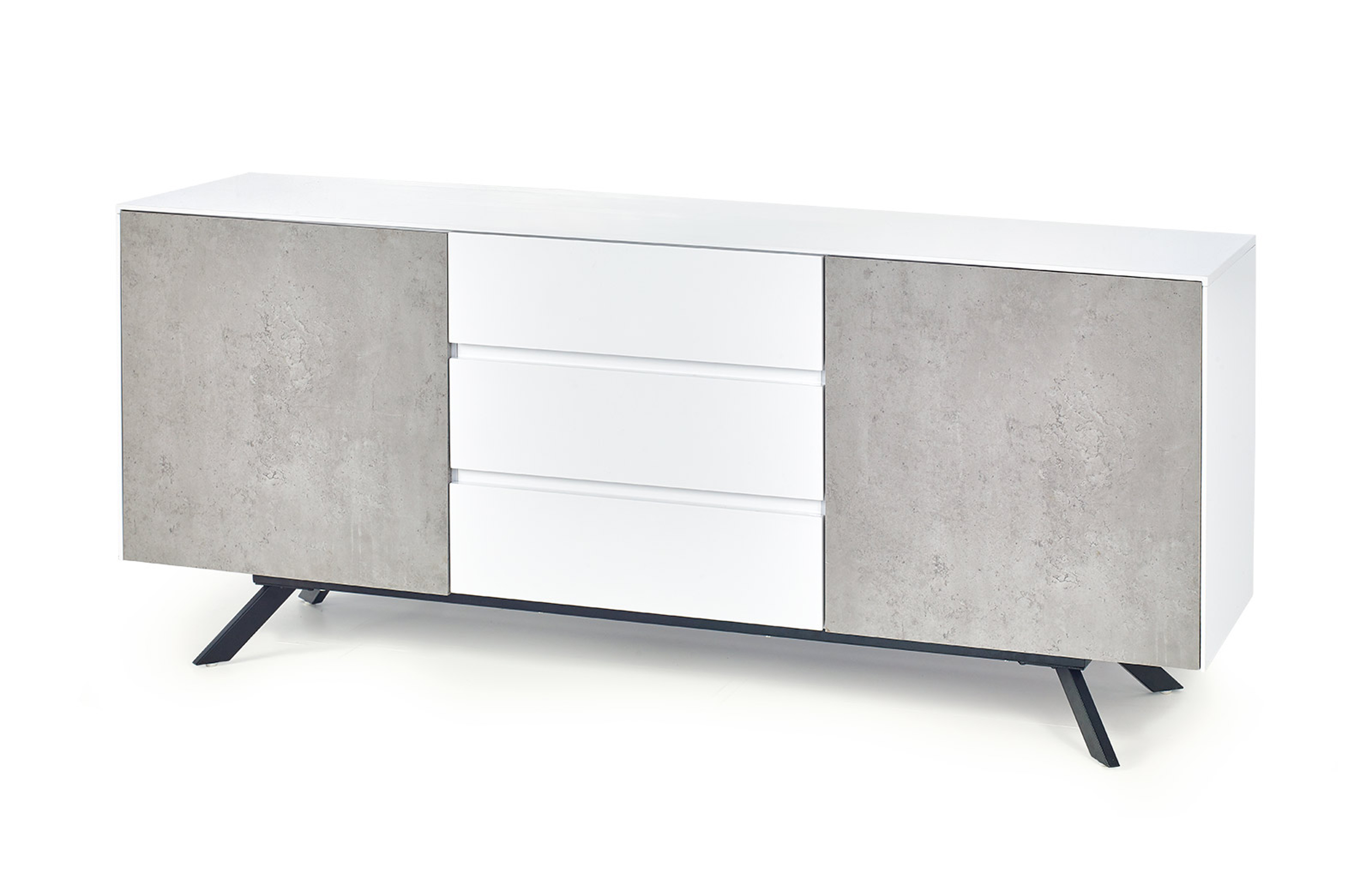 Komoda je vyráběna v dekoru betonu v kombinaci s bílou barvou.