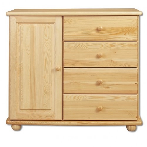 Kombinovaná komoda má v pravé části šuplíkovou část se čtyřmi prostornými šuplíky a v levé části je policová část. Zásuvky mají kolečkové výsuvy. Díky svým vlastnostem a barevné variabilitě se tato komoda skvěle hodí do všech ložnic, obývacích pokojů, jídelen i do dětských pokojů.