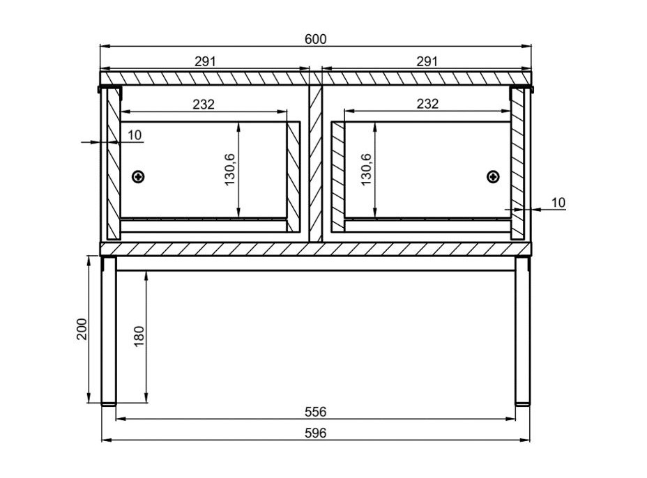 - materiál: 18mm laminovaná dřevotříska, ABS hrany, ocelový rám, hliníkové rukojeti