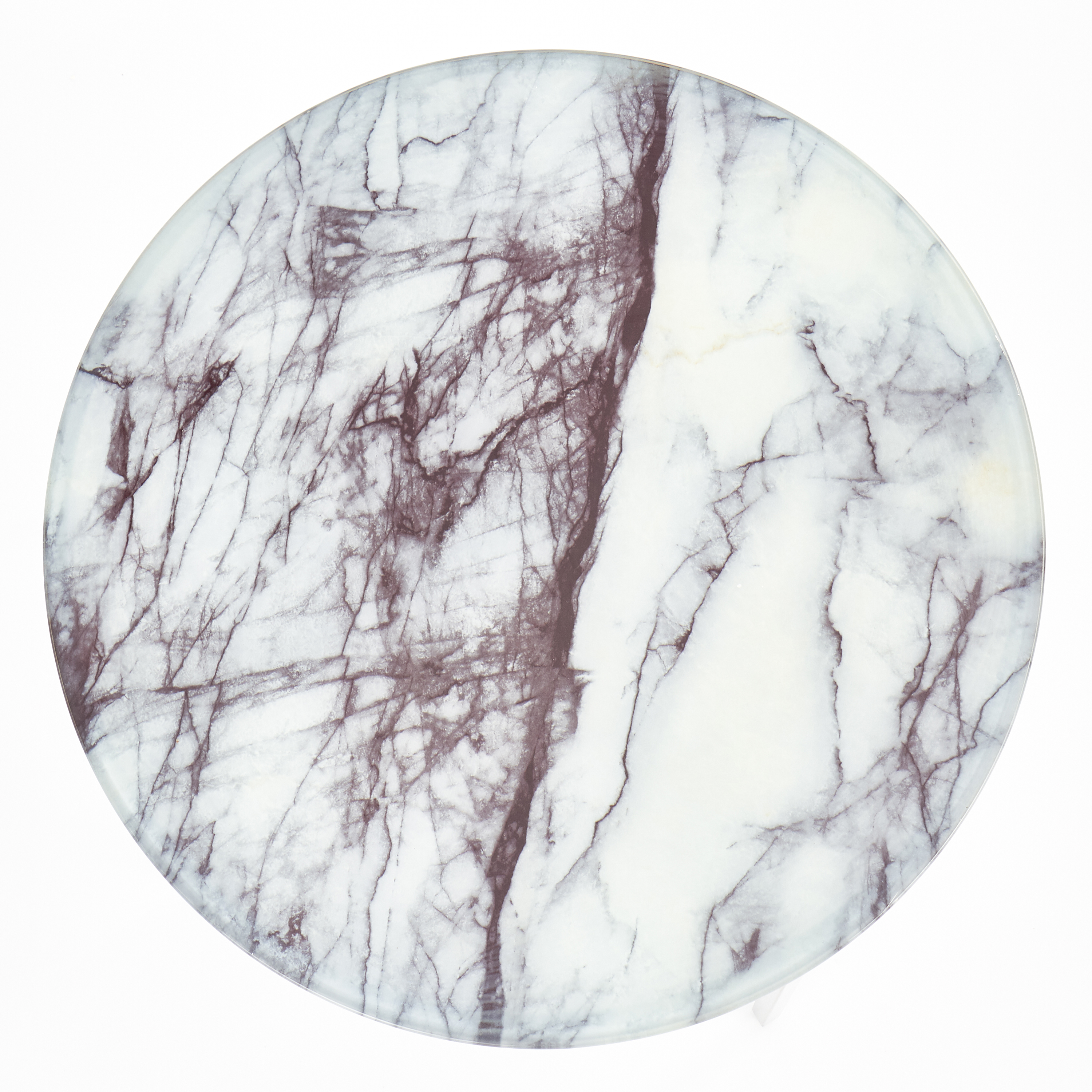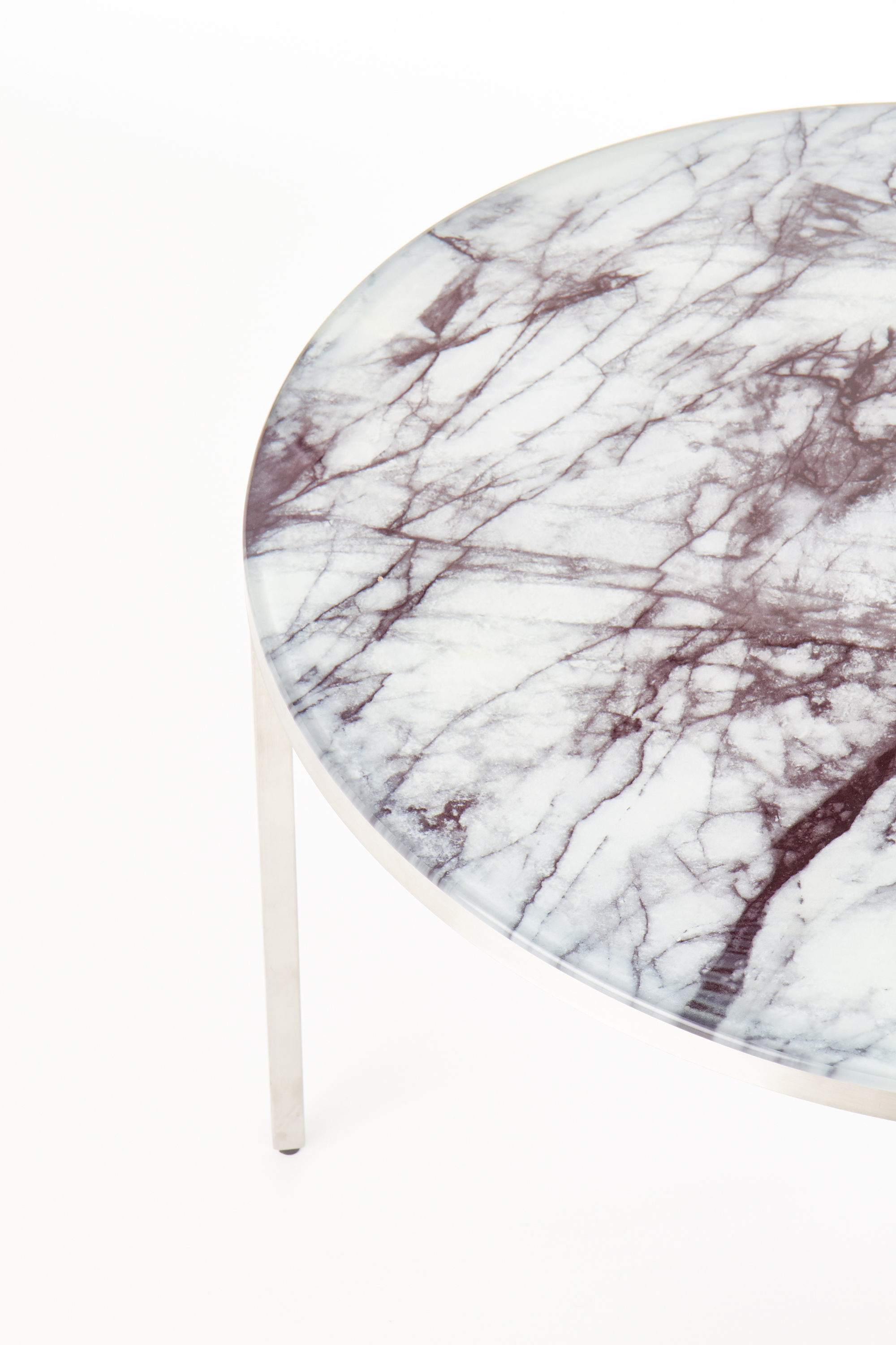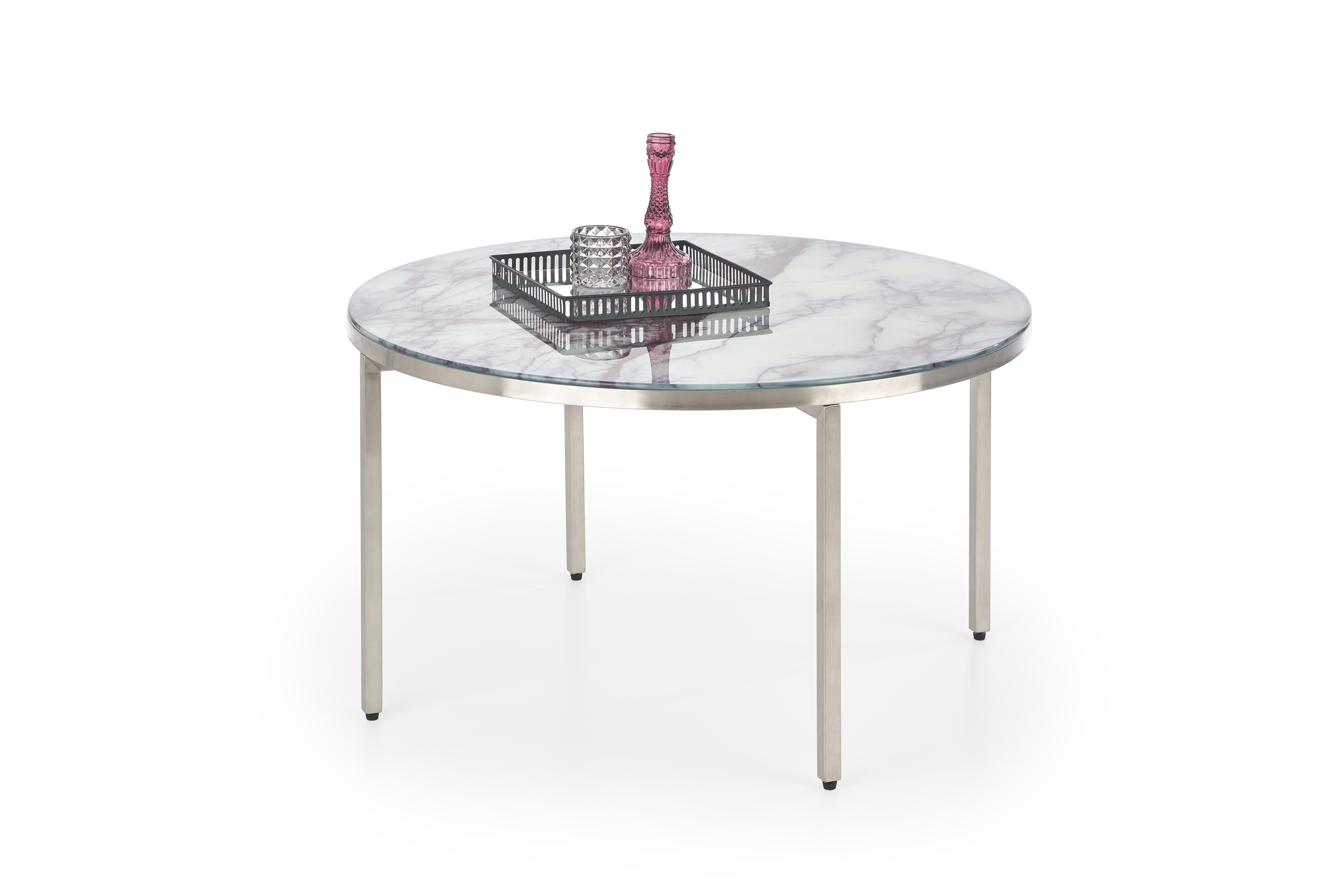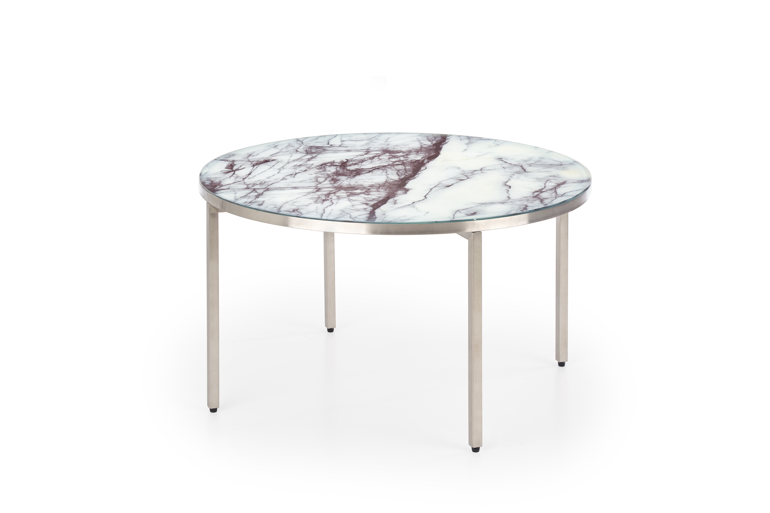Stolek je vyráběn v chromové barvě v kombinaci se sklem v dekoru mramoru.