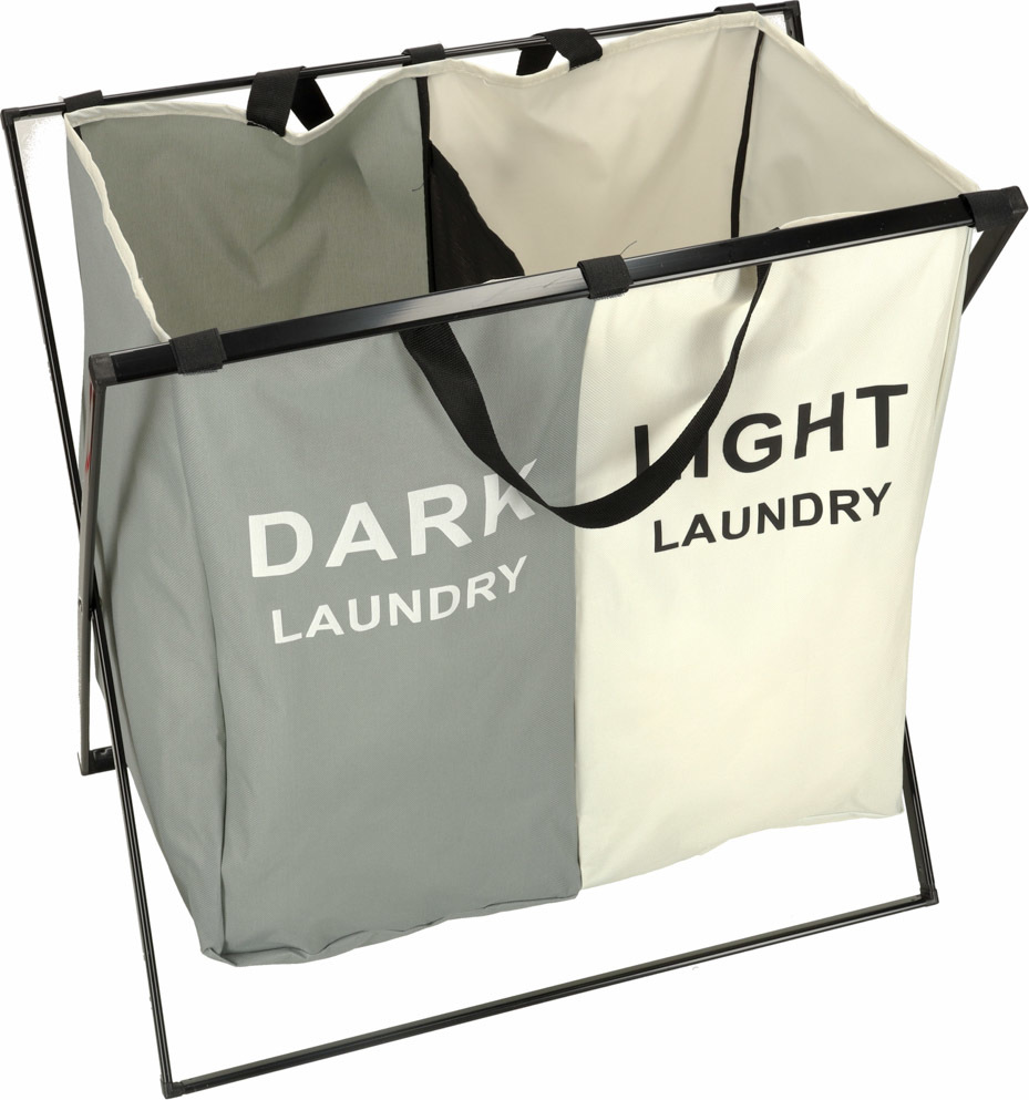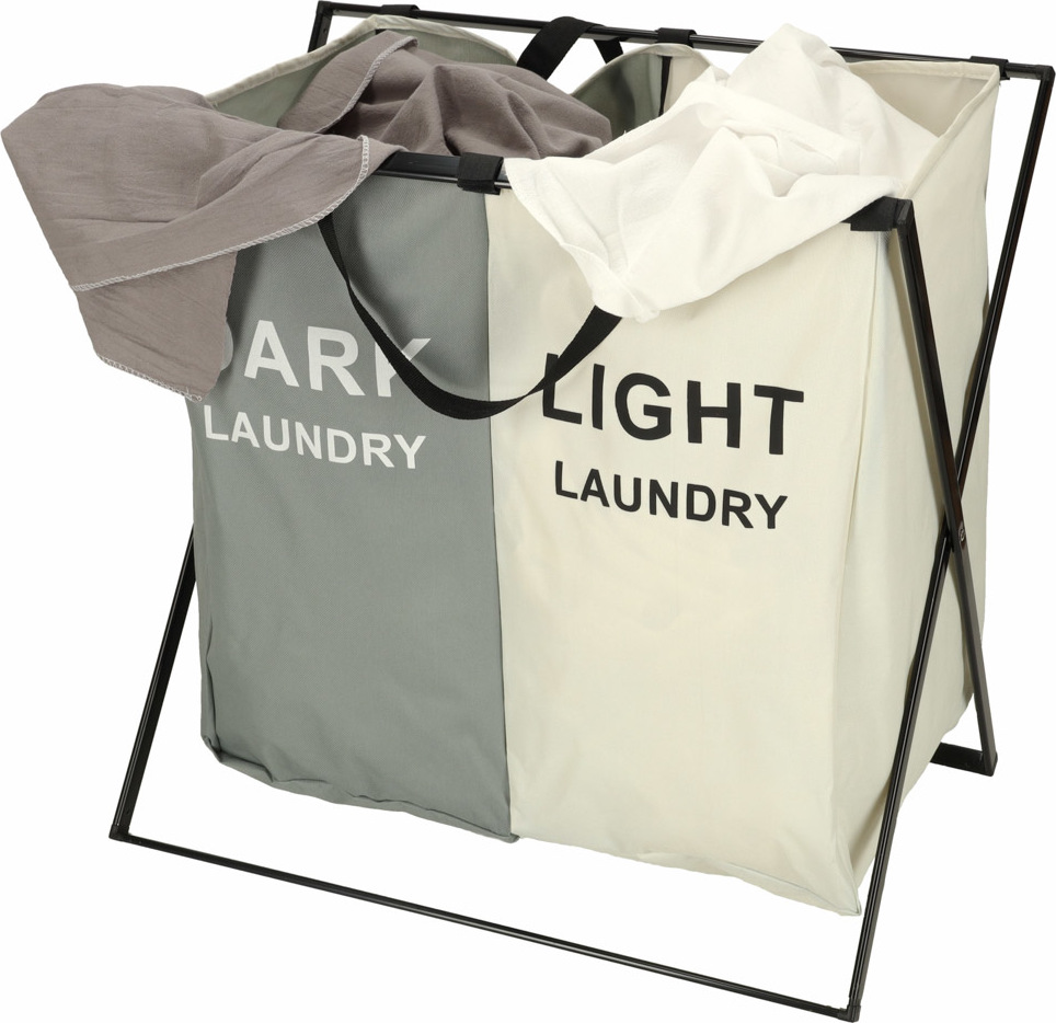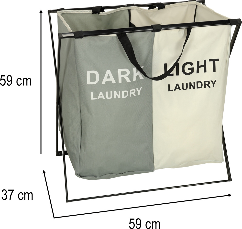 Dvoukomorový koš na prádlo je vyrobený z odolného materiálu s robustním rámem a je určen pro rychlé třídění prádla na bílé a barevné. Díky optimálně kompaktním rozměrům přihrádkového koše na prádlo je ideální i jako koš na prádlo do malých koupelen. Zároveň je navržen tak, aby pojal velké množství prádla, což z něj činí nepostradatelný organizér na prádlo. Díky skládací konstrukci nezabírá mnoho místa.