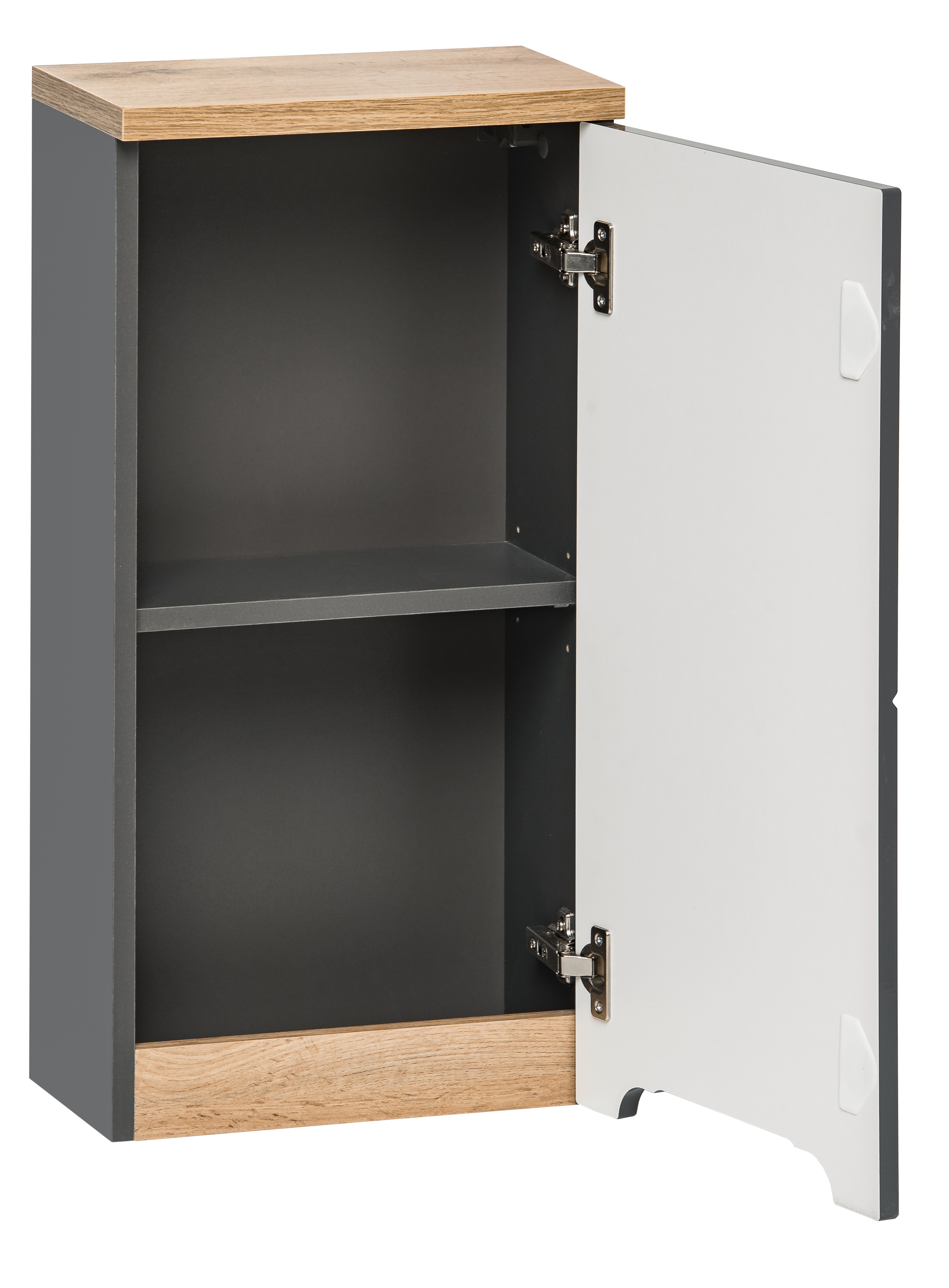 Luxusní nízká závěsná skříňka pojme obrovské množství věcí. Díky vyjímatelné polici si můžete snadno uspořádat vnitřní prostor skříňky. O bezproblémové užívání a dlouho životnost se stará korpus z kvalitních lamino desek a čela z MDF desek s ABS ochranou hran spolu s kvalitním kováním s tichým dovíráním. Orientaci skříňky si zvolíte dle vlastních dispozic na otevírání pro pravou nebo levou stranu.