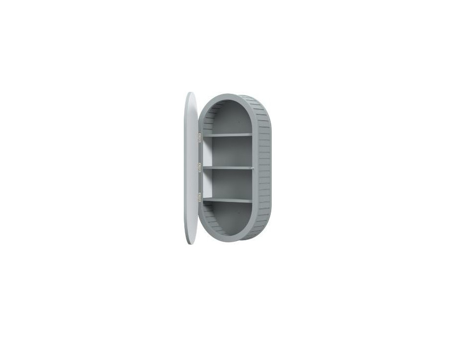 Zrcadlová závěsná skříňka Venezia zaujme svým originálním provedením a tvarem. Skříňka má zaoblený design a ozdobné drážkování korpusu. Díky tomu se bude skvěle hodit do moderně zařízených koupelen. Skříňka se třemi policemi bude skvěle sloužit pro ukládání kosmetiky a doplňků. Skříňka je vyrobena z fóliované MDF desky v matné pastelově šedé barvě. Skříňka vypadá velmi moderně a elegantně. Skříňka je osazena soft close panty a systémem otevírání dvířek push-to-open, které zaručují snadné používání.