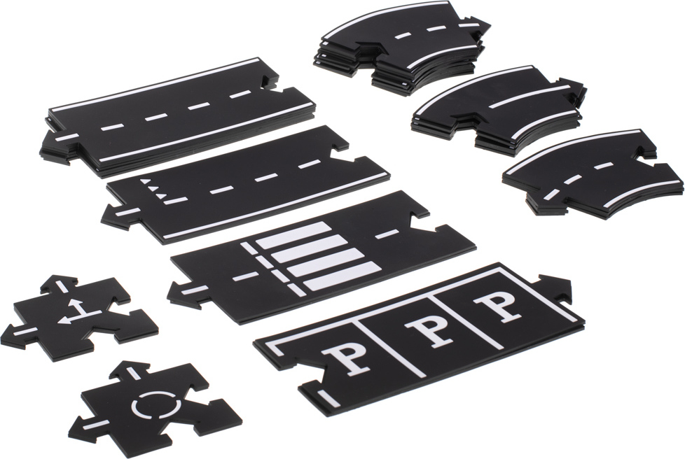 Kreativní puzzle dětem nejen poskytnou spoustu zábavy, ale také podpoří jejich správný vývoj. Čtyřicet různých dílků vám umožní vytvořit zajímavé a rozmanité trasy, které zajistí, že hraní bude vždy mimořádně poutavé. Vytvořené trasy poskytnou fantastickou jízdní dráhu pro všechna auta v dětské kolekci – a to vše díky šířce každého dílku, která je 8,5 cm. Hraní s autíčky a vytváření nových tras rozvíjí manuální dovednosti, jemnou motoriku a podporuje kreativní myšlení – rodiče batolat tento produkt jistě ocení. Tyto puzzle vám nejen poskytnou spoustu zábavy, ale jsou také ideální pro ochranu podlah nebo stolů před poškrábáním způsobeným koly aut – 3 mm silná pěna tento problém účinně vyřeší. Spodní strana produktu je pokryta protiskluzovou vrstvou, která zabraňuje posunutí dráhy. To usnadní montáž a zpříjemní hraní.