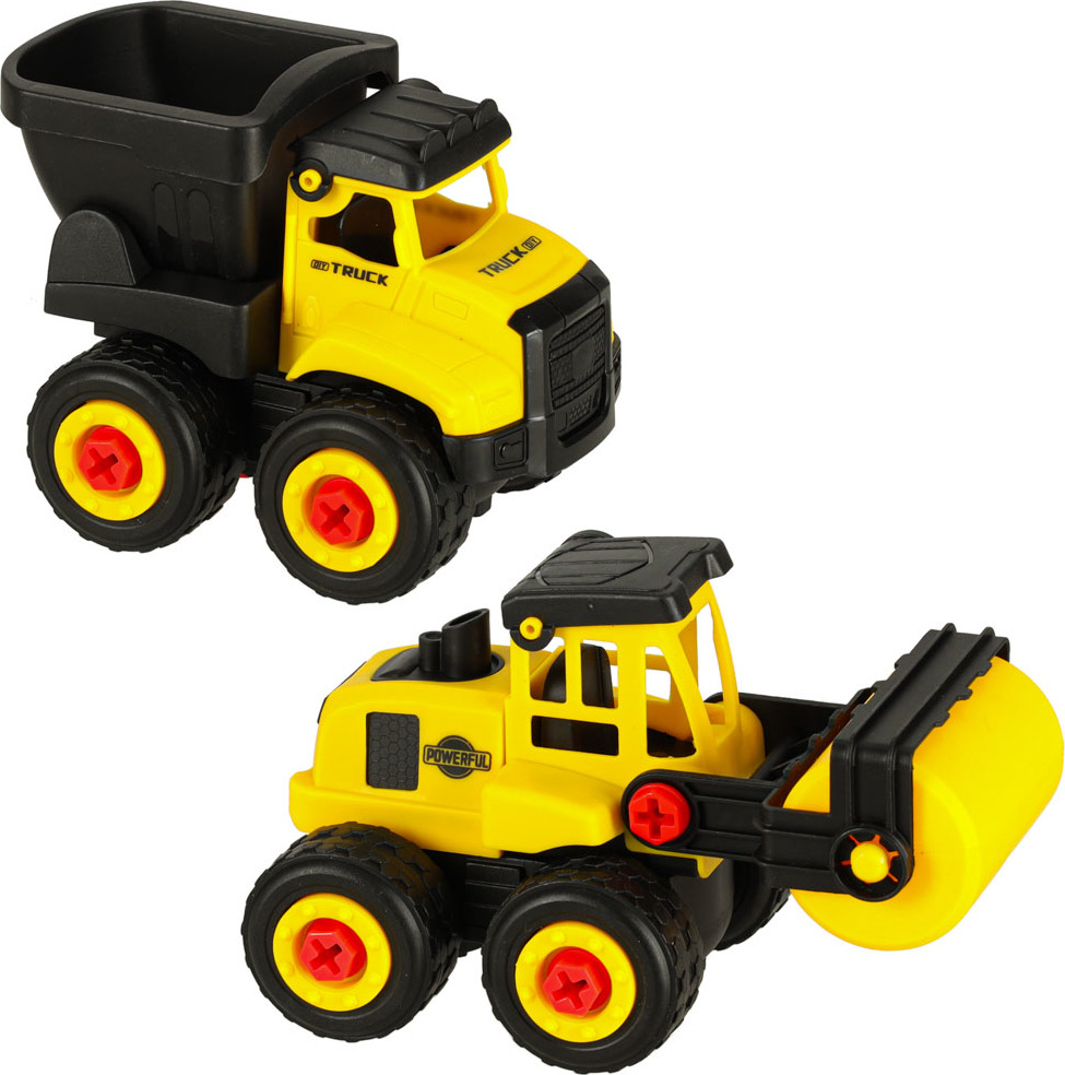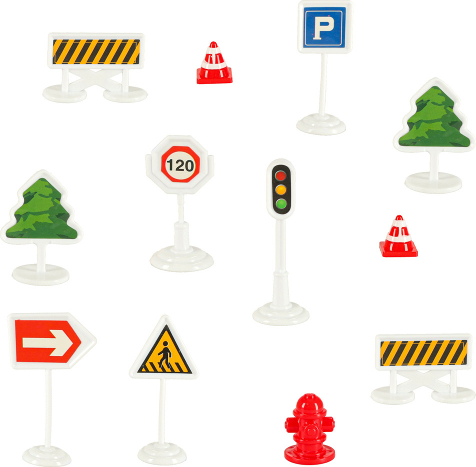 - 1x hračka auto se silničním válcem (Sada obsahuje dvě auta s různými prvky. Provedení vozidel se může v jednotlivých sériích lišit)