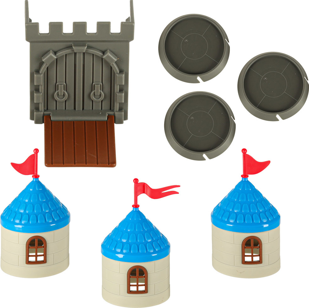 - hradní prvky (základy, věže, dveře a okna, střecha, vlajky)