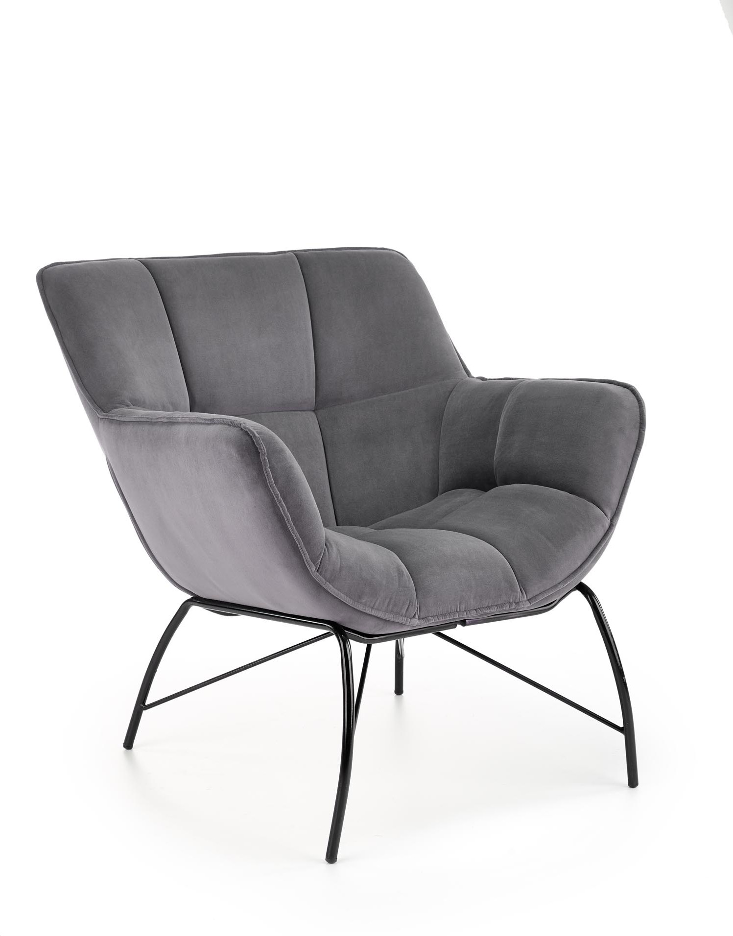 Křeslo BELTON zaujme vysokým a profilovaným opěradlem a praktickými bočnicemi, které sedáku dodávají jemné zaoblení. Ozdobné prošívání dodává nábytku nadýchanost a moderní vzhled. Křeslo je celočalouněné sametovou látkou, která se snadno udržuje v čistotě a je příjemná na dotek. Křeslo je umístěno na tvarovaných nohách vyrobených z černé práškově lakované oceli.