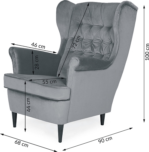 Křeslo HOWARD kombinuje klasický styl s moderní elegancí, což jej činí ideálním doplňkem pro obývací pokoje, kanceláře nebo i hotelové pokoje a jiné komerční prostory. Křeslo je vybaveno vysokým opěradlem se zajímavým prošíváním a vysokými područkami, které přispívají k vysokému komfortu sezení. Křeslo stojí na nohou z tmavě hnědého dřeva ve vysokém lesku, které mu dodávají stabilitu a pevnost.