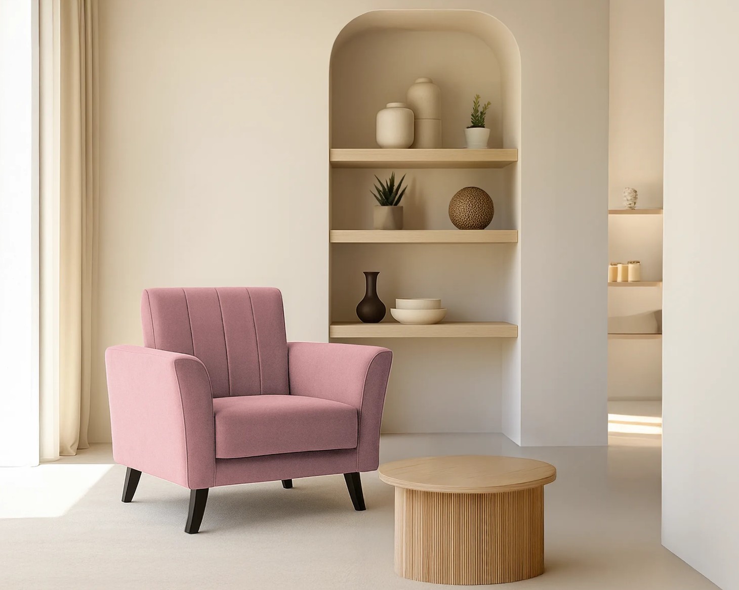 Křeslo LEROY je skvělým doplňkem do interiérů zařízených ve skandinávském nebo moderním stylu. Charakteristickým prvkem křesla LEROY jsou jeho dřevěné nohy a prošívaní na opěradle a bocích, které zajišťuje pohodlí a přidává křeslu na eleganci. Křeslo je čalouněno látkou KRONOS/PAROS která výjimečně jemná, příjemná na dotek a na světle se krásně třpytí.