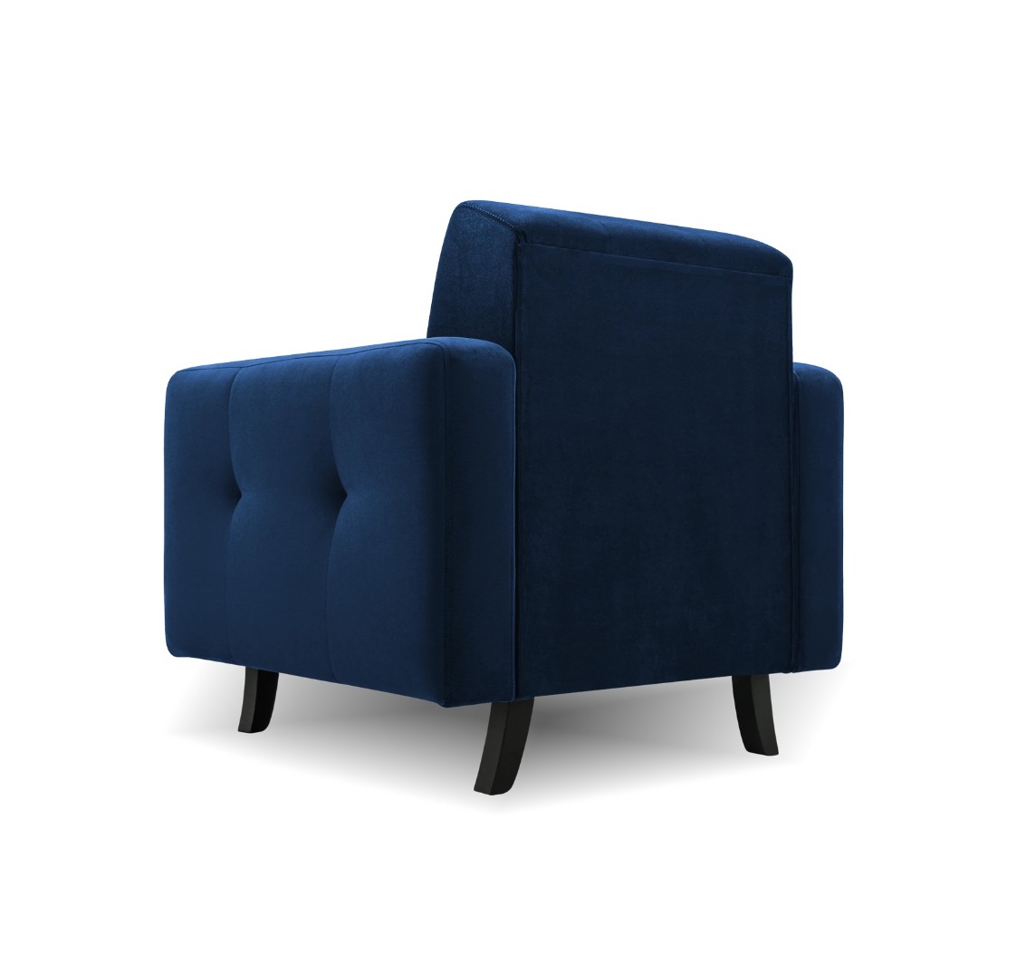 Křeslo LISABON skvěle zapadne do všech interiérů. Dekorativním prvkem jsou dřevěné černé nohy. Zadní strana je potažená látkou, což umožňuje jeho umístění kdekoliv v místnosti.