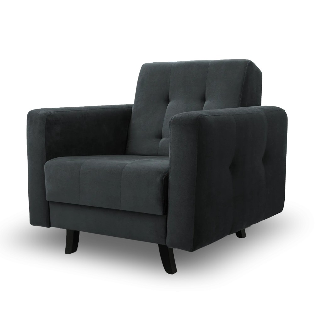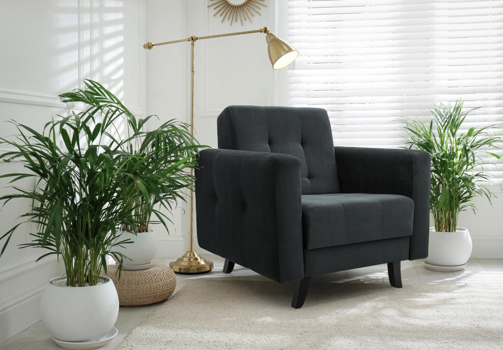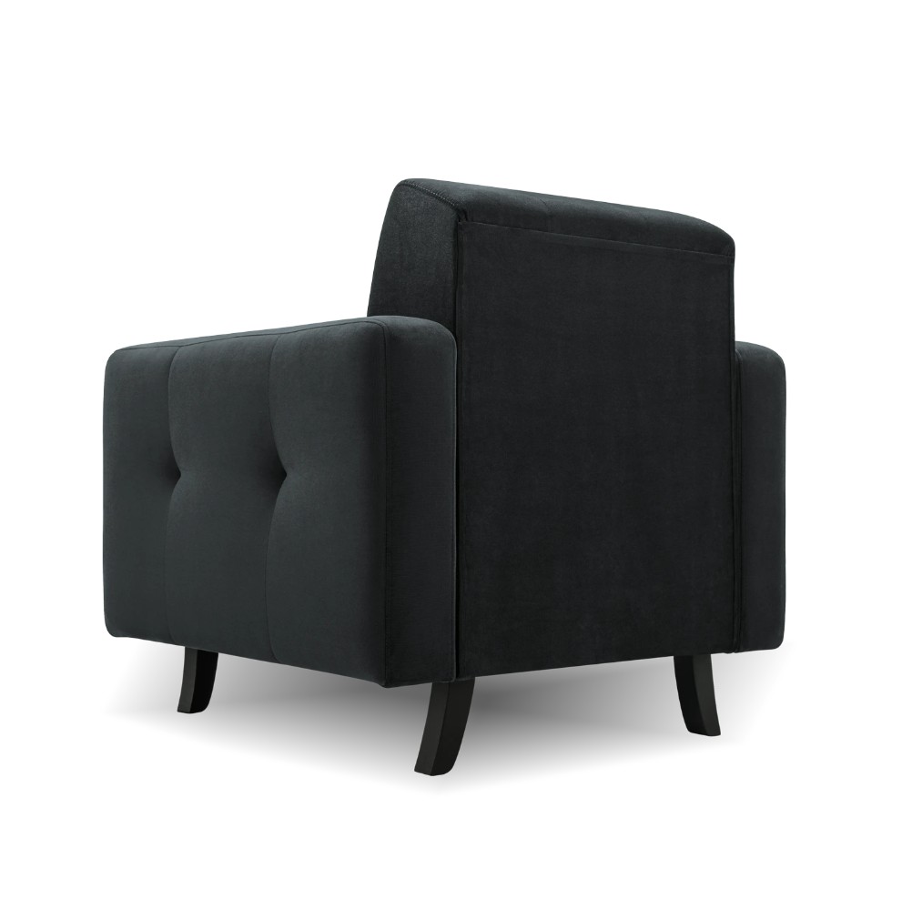 Křeslo LISABON skvěle zapadne do všech interiérů. Dekorativním prvkem jsou dřevěné černé nohy. Zadní strana je potažená látkou, což umožňuje jeho umístění kdekoliv v místnosti.