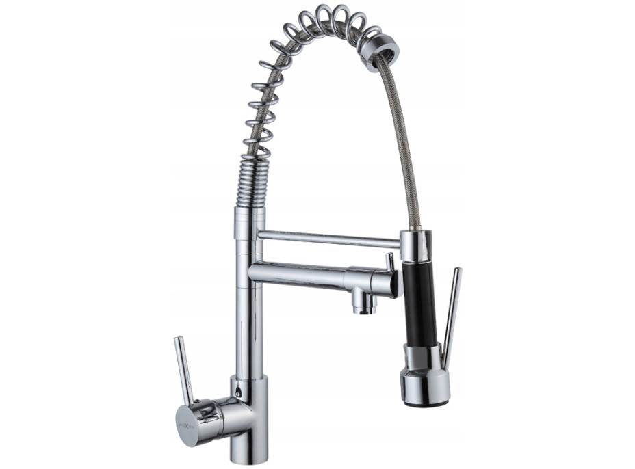 Funkcemi je baterie podobná těm v profesionálních kuchyních. Flexibilní krk snadno vycvaknete z háčku a můžete s ním volně pohybovat na všechny strany. Na koncovce vývodu naleznete mačkací spoušť pro spuštění výtoku vody. To napomůže k veliké úspoře vody. Pro případ napouštění hrnce či dřezu slouží výtokový kohoutek s vlastním ventilem.