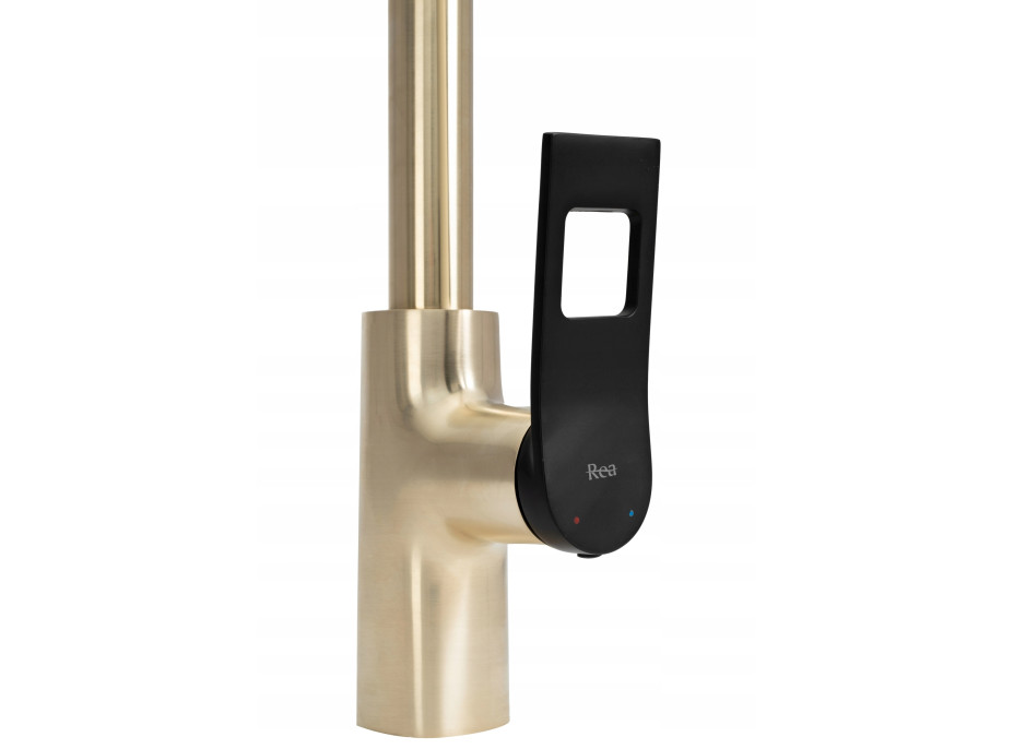 Kuchyňská baterie REA SOUL s výsuvnou sprchou - kartáčovaná zlatá/černá