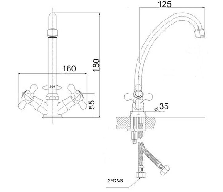 Tělo moderní vodovodní baterie je vyrobeno z mosazi, které je pokryto čtyřnásobnou vrstvou chromu. Tato technika chrání baterii před poškrábáním a korozí. Baterie se hodí do každé kuchyně a lze ji bez problému kombinovat s keramikou i sklem. Systém uvnitř baterie efektivně provzdušňuje vodu, což přináší nižší spotřebu. Dodáváno s hadicí, těsněním a montážními šrouby.