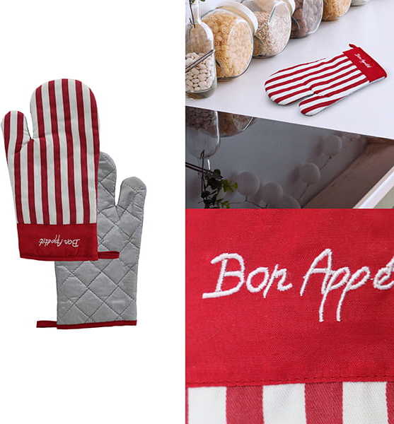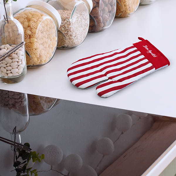 Rukavice do trouby z kolekce BON APETIT poskytuje vysokou ochranu díky tomu, že je tepelně odolná a dostatečně velká. Díky tomu si chráníte velmi velkou část ruky. I když sáhnete hluboko do trouby, rukavice vás udrží v bezpečí, nehrozí popálení zápěstí nebo předloktí. Navíc má krásný pruhovaný vzor v živých barvách, který jistě oživí výzdobu vaší kuchyně.