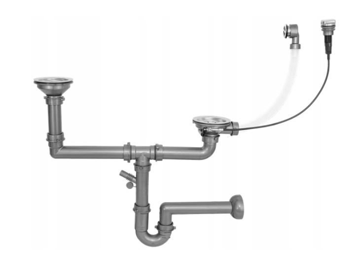 Sada obsahuje automatický dvoukomorový sifon s ovládáním, na který lze připojit odpad z myčky/pračky.