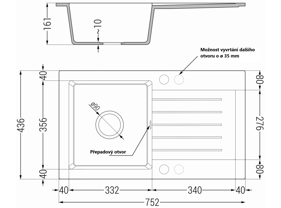 - vyvrtané otvory: ø 35 mm