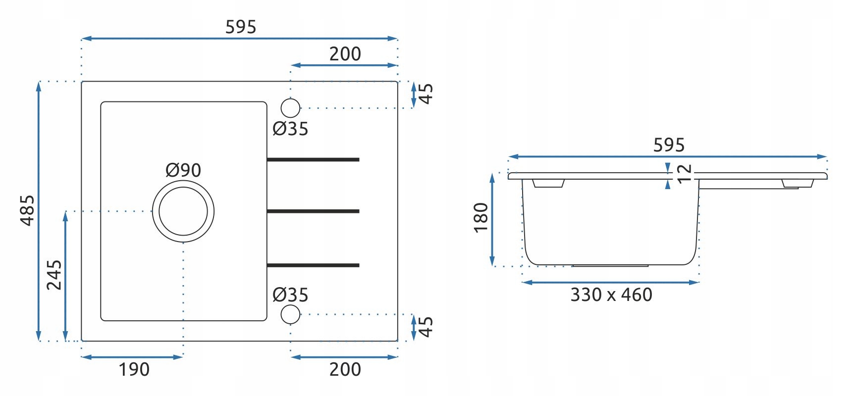 Tento kuchyňský dřez je vyroben z kvalitního granitu - extrémně odolný materiál vyrobený ze žuly (80 %) a kvalitní syntetické pryskyřice (20 %). Žula dřezu dodává vysokou odolnost proti mechanickému poškození, poškrábání a teplotním šokům až do +280 °C. Pryskyřice materiál spojuje, nabízí hladký neporézní povrch a má vysokou odolnost proti klasickým čistícím prostředkům.