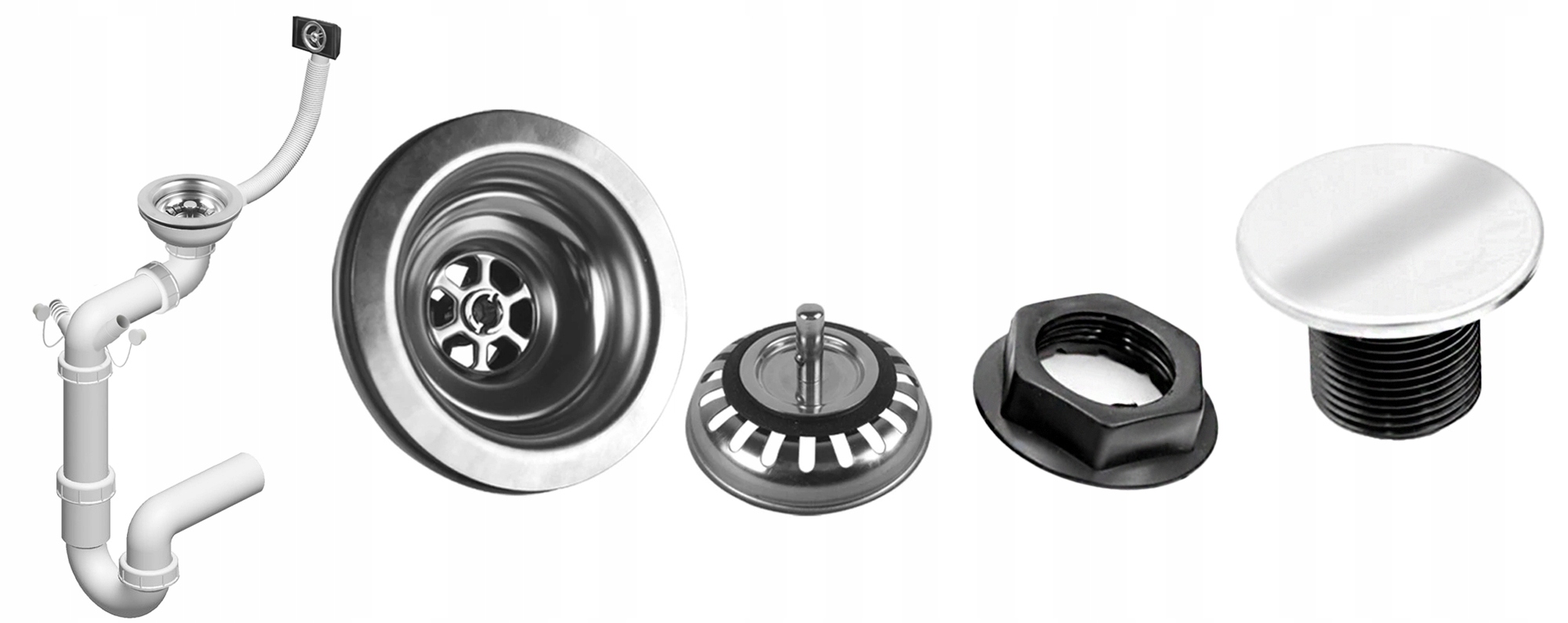 Sada obsahuje sifon, na který lze připojit odpad z myčky/pračky, s uzavíratelnou zátkou se sítkem. Ve dřezu jsou připraveny dva otvory, které využijete například na baterii a dávkovač mycího prostředku. Pokud ale využijete pouze jeden otvor, tak je součástí balení zátka pro vyplnění druhého otvoru.