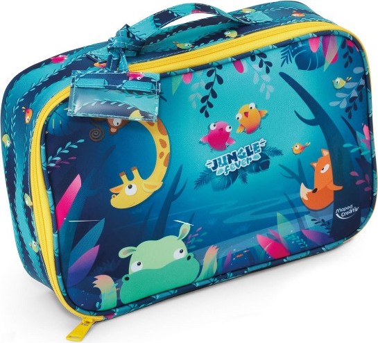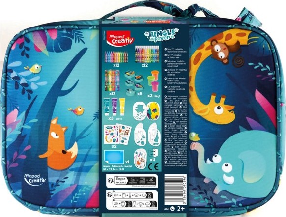 Kufřík z odolného materiálu zdobený grafikou barevných obyvatel veselé džungle. Pastelky, fixy, plastelíny, samolepky a razítka, šablony a prstové barvy - tyto nádherně barevné doplňky budou děti inspirovat a umožní jim vytvářet ty nejúžasnější výtvory různými technikami. S výrobky z kolekce Jungle Fever se všichni malí umělci zabaví a zároveň se něco naučí.