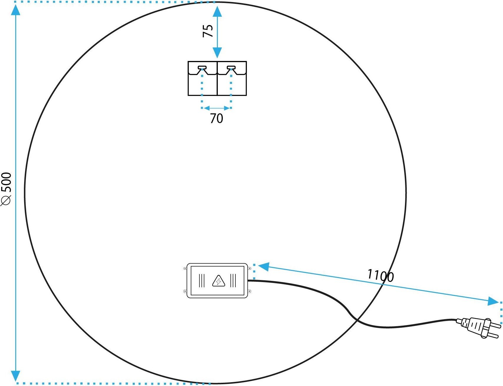 Instalace zrcadla je velmi snadná díky napájecímu kabelu do zásuvky s délkou 110 cm.