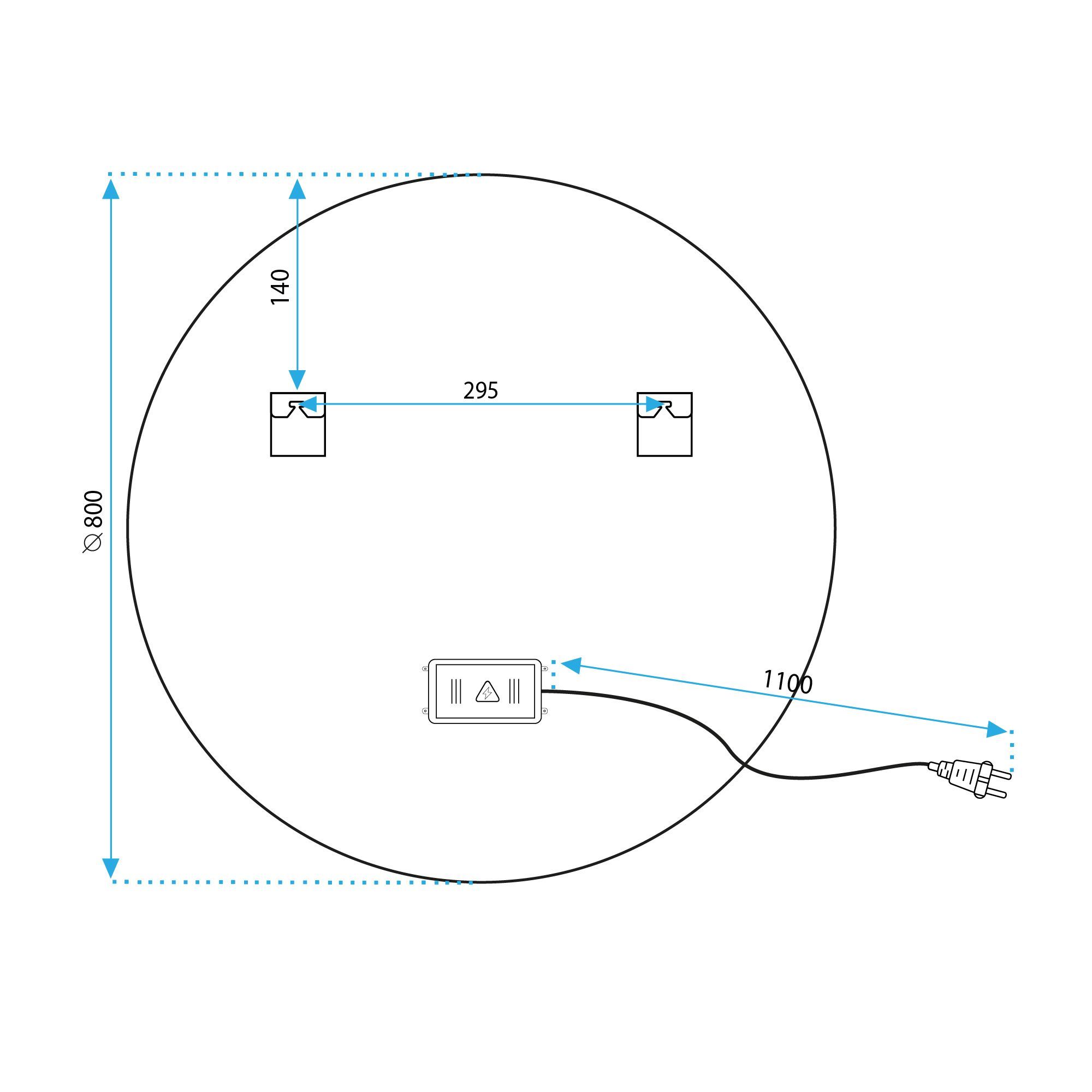 Instalace zrcadla je velmi snadná díky napájecímu kabelu do zásuvky s délkou 110 cm.