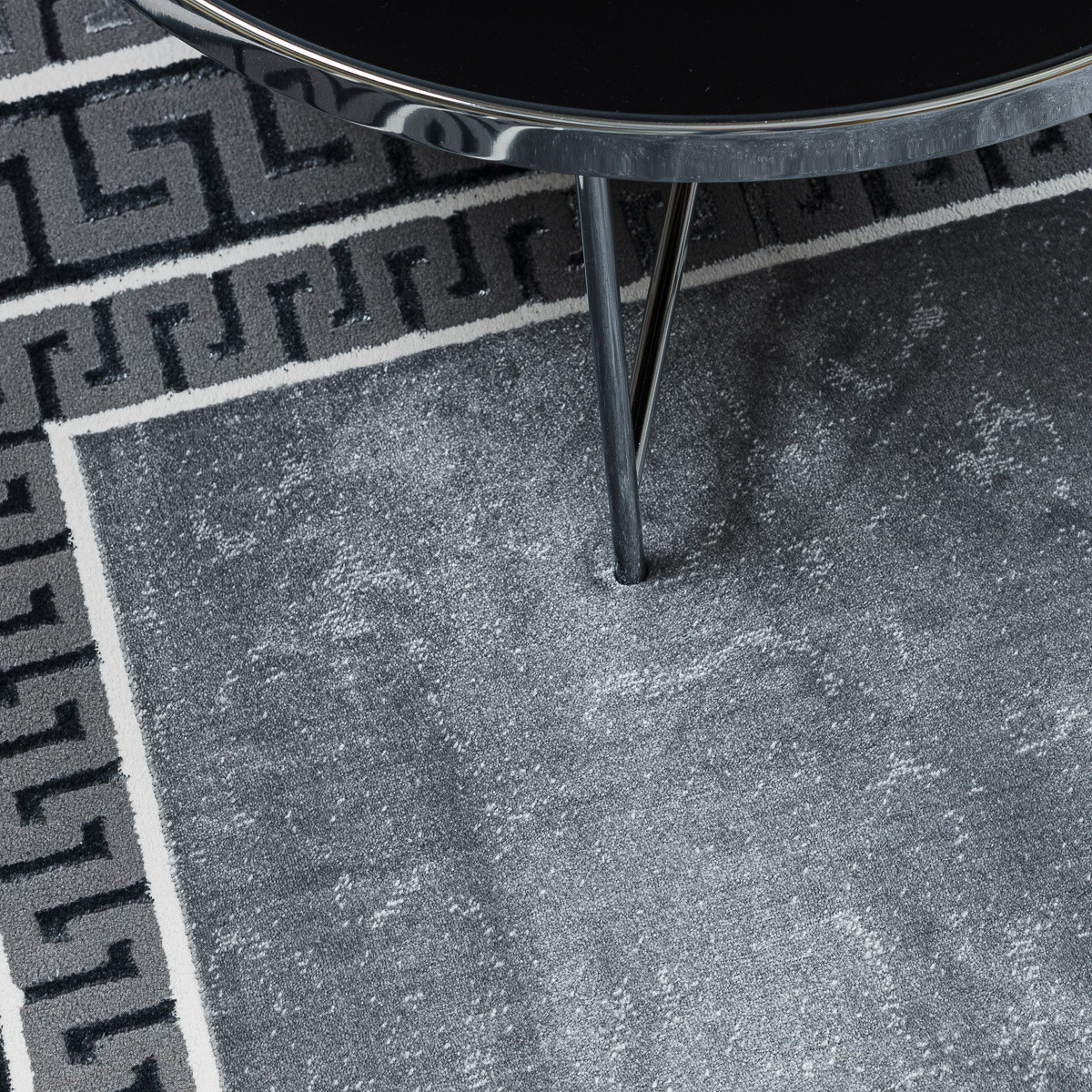 Kusový koberec Allure 1960 grey je ukázkou moderní elegance v tmavém provedení. Grafitově šedý podklad doplňuje výrazná bordura s motivem řeckého klíče v kontrastní černo-bílé kombinaci. Tento design působí odvážně, noblesně a dokáže dodat interiéru sofistikovanou atmosféru s nádechem luxusu. Koberec je vyrobený ze směsi 60 % polypropylenu a 40 % polyesteru, což zajišťuje jeho odolnost i příjemnou hebkost. Dvě výšky vlasu vytvářejí jemný 3D efekt, který podtrhuje strukturu bordury i detailní vzor. Certifikace OEKO-TEX garantuje zdravotní nezávadnost. Výška vlasu: 10 mm.
