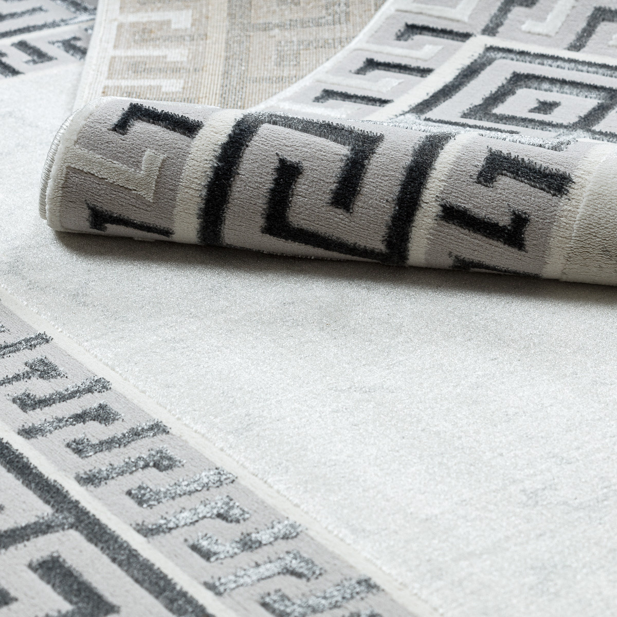 Koberec Allure 1960 white/grey se skvěle hodí do obývacího pokoje jako reprezentativní prvek, do ložnice pro vytvoření harmonického prostředí i do pracovny, kde podpoří elegantní a seriózní atmosféru. Působí moderně a zároveň nadčasově díky elegantnímu spojení geometrie a jemného mramorového efektu. Světlý podklad s decentní kresbou kontrastuje s výraznou bordurou v šedo-černém provedení, která připomíná klasický motiv řeckého klíče. Koberec je vyrobený ze směsi 60 % polypropylenu a 40 % polyesteru, takže je pevný, odolný a zároveň měkký na dotek. Dvě úrovně vlasu vytvářejí jemný 3D efekt, který podtrhuje strukturu a dodává koberci vizuální hloubku. Certifikace OEKO-TEX garantuje zdravotní nezávadnost, koberec je proto bezpečný i pro domácnosti s dětmi či alergiky. Samozřejmostí je i možnost použití s podlahovým vytápěním. Výška vlasu: 10 mm.