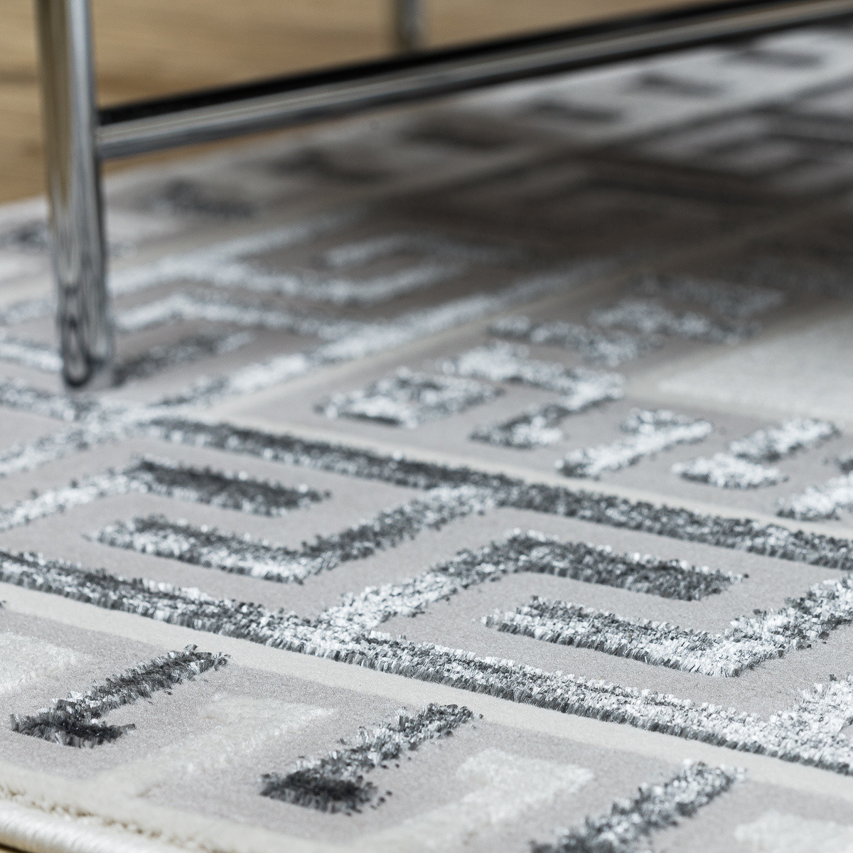 Koberec Allure 1960 white/grey se skvěle hodí do obývacího pokoje jako reprezentativní prvek, do ložnice pro vytvoření harmonického prostředí i do pracovny, kde podpoří elegantní a seriózní atmosféru. Působí moderně a zároveň nadčasově díky elegantnímu spojení geometrie a jemného mramorového efektu. Světlý podklad s decentní kresbou kontrastuje s výraznou bordurou v šedo-černém provedení, která připomíná klasický motiv řeckého klíče. Koberec je vyrobený ze směsi 60 % polypropylenu a 40 % polyesteru, takže je pevný, odolný a zároveň měkký na dotek. Dvě úrovně vlasu vytvářejí jemný 3D efekt, který podtrhuje strukturu a dodává koberci vizuální hloubku. Certifikace OEKO-TEX garantuje zdravotní nezávadnost, koberec je proto bezpečný i pro domácnosti s dětmi či alergiky. Samozřejmostí je i možnost použití s podlahovým vytápěním. Výška vlasu: 10 mm.