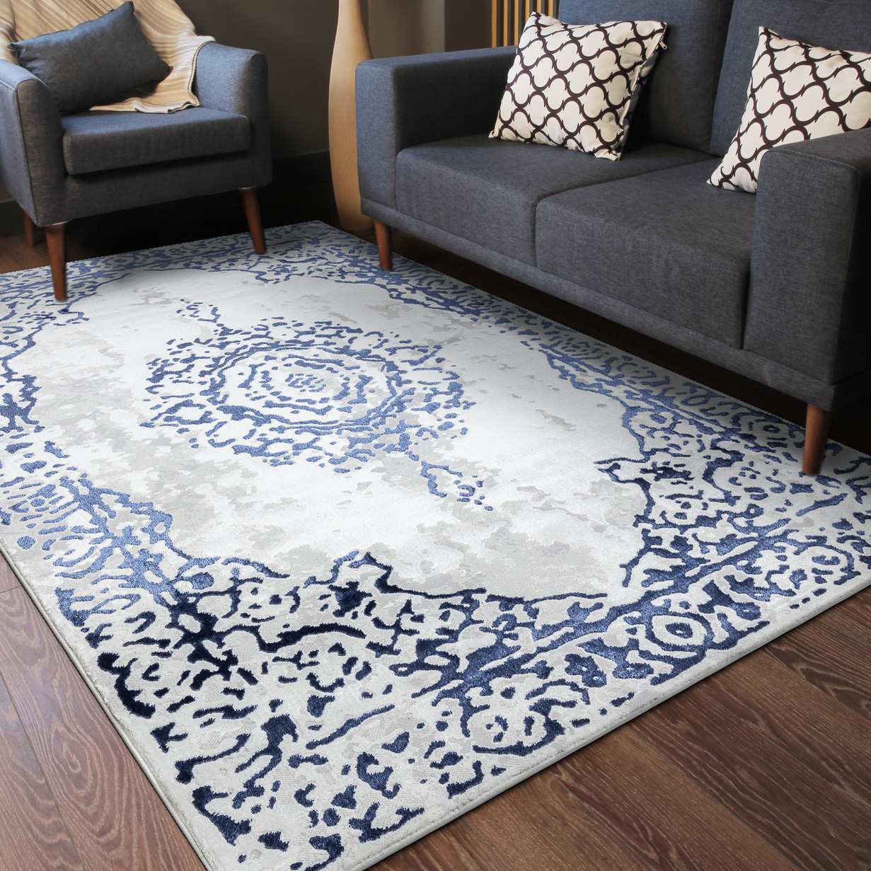 Kusový koberec Allure 1961 white/blue propojuje tradiční orientální estetiku s moderním designem. Bílý podklad doplňuje výrazný tmavě modrý ornament, který připomíná klasické perské vzory, ovšem zpracované v současném, svěžím pojetí. Tento kontrast působí elegantně, harmonicky a dokáže se stát dominantním prvkem interiéru. Koberec je vyrobený ze směsi 60 % polypropylenu a 40 % polyesteru, což mu dodává nejen odolnost, ale i měkký a příjemný povrch. Dvě výšky vlasu vytvářejí jemný 3D efekt, který podtrhuje reliéfní kresbu vzoru a dodává koberci výjimečnou hloubku. Certifikace OEKO-TEX zaručuje zdravotní nezávadnost a šetrnost k životnímu prostředí, koberec je navíc vhodný i na podlahové vytápění. Allure 1961 se skvěle hodí do obývacího pokoje jako elegantní středobod prostoru, do ložnice pro nádech útulnosti i do pracovny, kde vytvoří stylovou a prestižní atmosféru. Výška vlasu: 10 mm.