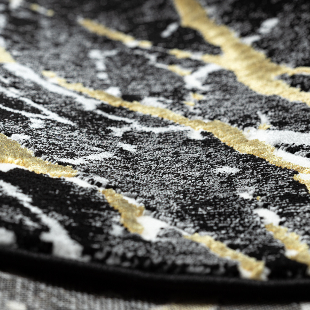 Kusový koberec Allure 1963 black/gold je pro ty, kteří chtějí dodat svému domovu nádech luxusu a odvážného stylu. Černý podklad s výraznou mramorovou kresbou je protkán zlatými a šedými liniemi, které působí jako třpytivé žilkování drahého kamene. Výsledkem je design, který vyzařuje noblesu, eleganci a dramatický šarm. Vlas tvoří směs polypropylenu a polyesteru, díky čemuž je koberec odolný, měkký a snadno se udržuje. Dvě výšky vlasu vytvářejí jemný 3D efekt, který podtrhuje mramorový vzor a dodává mu hloubku i luxusní vzhled. Certifikace OEKO-TEX zaručuje zdravotní nezávadnost a šetrnost k životnímu prostředí, koberec je navíc vhodný i pro použití s podlahovým vytápěním. Allure se skvěle hodí do moderních obývacích pokojů, kde se stane výrazným středobodem, do ložnic pro vytvoření sofistikované atmosféry. Výška vlasu: 10 mm