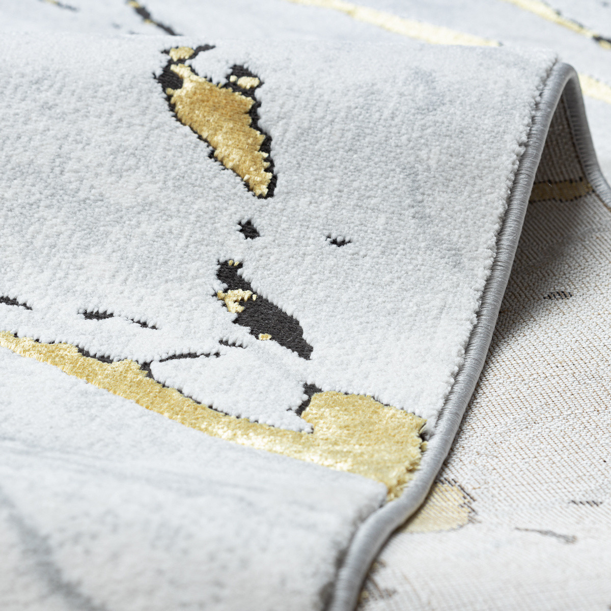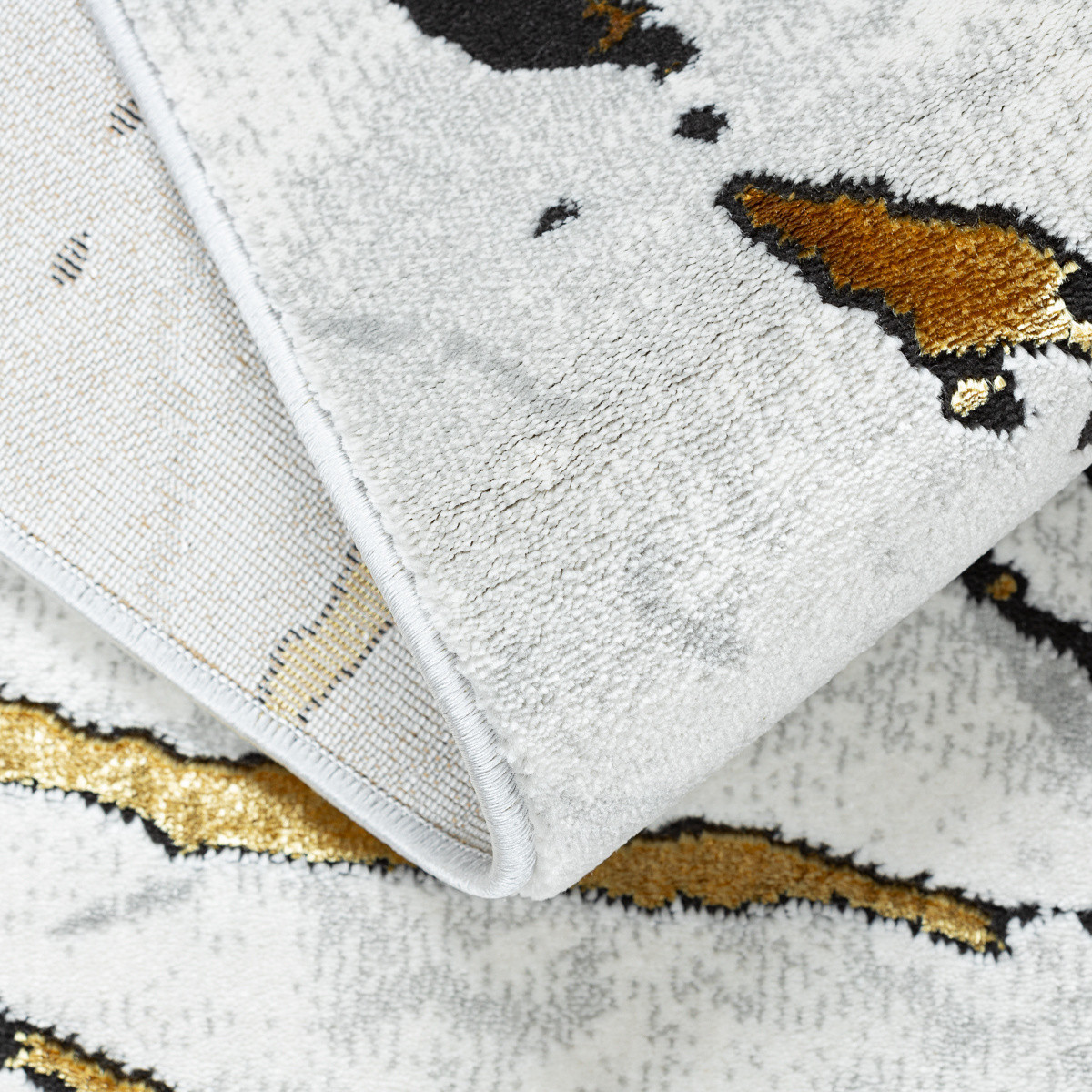 Kusový koberec Allure 1963 white/gold je skutečným symbolem elegance a vytříbeného vkusu. Na světlém podkladu se rozbíhá vzor inspirovaný žilkováním přírodního mramoru, který je zdůrazněn jemnými černými liniemi a především zlatými akcenty. Tyto zlaté detaily působí jako luxusní šperk, jenž dodává koberci noblesní charakter a promění interiér v prostor plný stylu a sofistikovanosti. Vlas koberce z polypropylenu a polyesteru zajišťuje odolnost, příjemnou měkkost i snadnou údržbu. Dvě výšky vlasu vytvářejí jemný 3D efekt, který zvýrazňuje mramorovou kresbu a dodává koberci působivou hloubku. Allure se skvěle hodí do obývacího pokoje, kde se stane nepřehlédnutelným středobodem, do ložnice, kde vnese nádech luxusu. Výška vlasu: 10 mm.