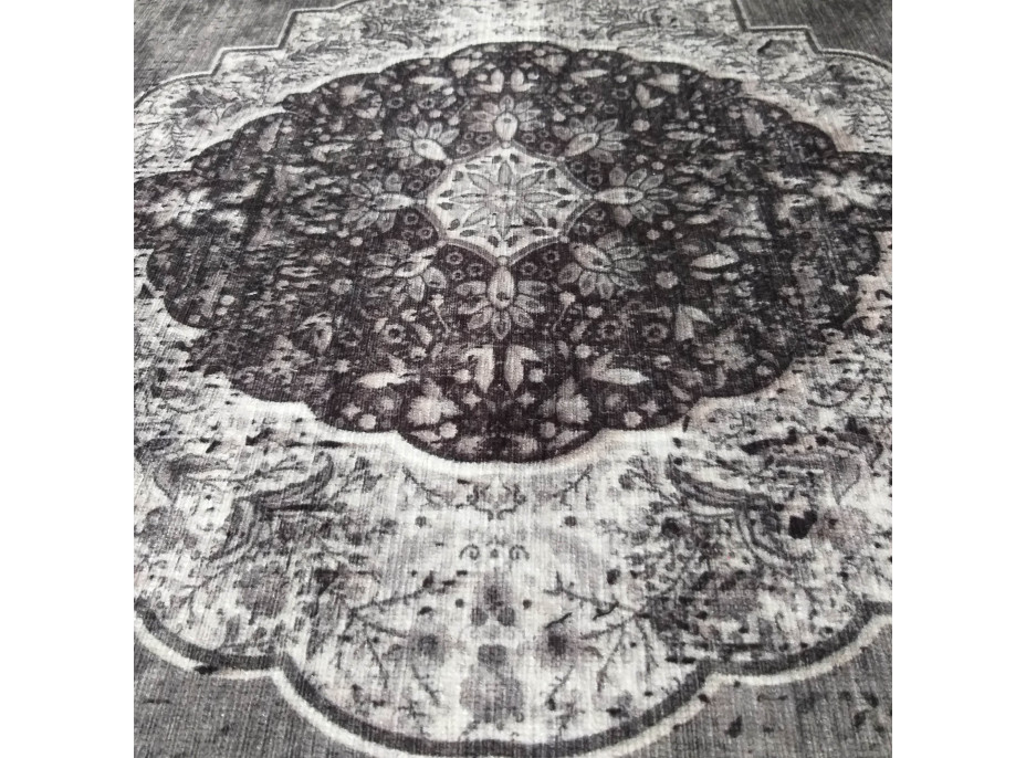 Koberec z kolekce ANTIQUE v šedé barvě skvěle doplní váš obývací pokoj v klasickém nebo moderním stylu. Krásný ornament uprostřed koberce mu dodává šarm. Je vyroben z polyesteru, což zaručí, že vydrží sloužit po mnoho let. Koberec má protiskluzový podklad, který zabraňuje možnému uklouznutí. Koberce z této kolekce lze prát v pračce na 30 stupňů, což usnadňuje jejich udržování v čistotě. Koberec je praktický a velmi funkční.
