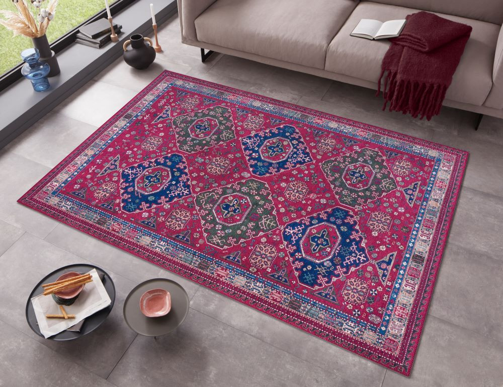 Orientální kusové koberce z řady Asmar vynikají nápaditými vintage vzory, které jsou doplněné moderními prvky. Tyto koberce tak skvěle kombinují tradiční motivy a nové trendy. Koberce jsou barevné a tak krásně prozáří každý interiér. Vyrábějí se v Německu u oblíbené společnosti Hanse Home ze 100% polyesterového vlákna. Koberce jsou tak měkké a příjemné na dotek. Jejich krátký vlas je pak zárukou snadné a bezproblémové údržby. Koberce jsou lemovány, ale nejedná se o standartní obšití. Koberce Asmar potěší též nízkou hmotností pro snadnou přenositelnost. Na výběr je z několika vzorů a designů a mnoha velikostí, takže si jistě vybere každý.Vlastnosti