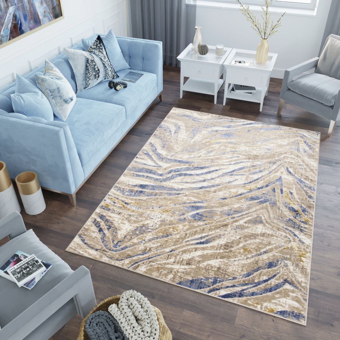 Kusový koberec ASTHANE Sand - bílý/tmavě modrý/hnědý
