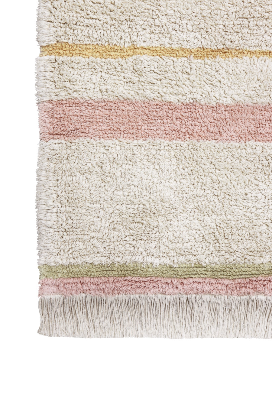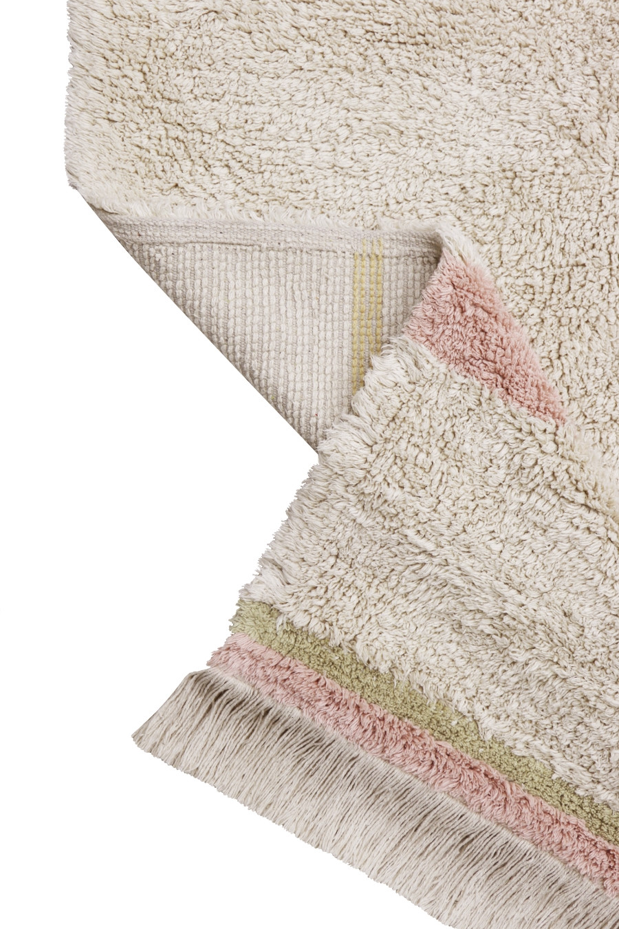 V případě zašpinění můžete koberce vyprat v pračce, a to jednotlivě na jemný program při 30 °C bez bělení a změkčovadel. Použijte jemný prací prostředek. Pokud má koberec třásně nebo bambulky, zvolte nízké otáčky. Mokré koberce nenechávejte v pračce, protože by mohlo dojít ke stékání barev nebo vzniku skvrn. Můžete je sušit v sušičce při nízké teplotě. Pokud se na koberci objeví žmolky, je to zcela přirozené a jedná se o zbytky vláken vzniklých při stříhání bavlny. Když na koberci najdete dlouhé nebo volné nitě, zastřihněte je nůžkami, nevytahujte je.