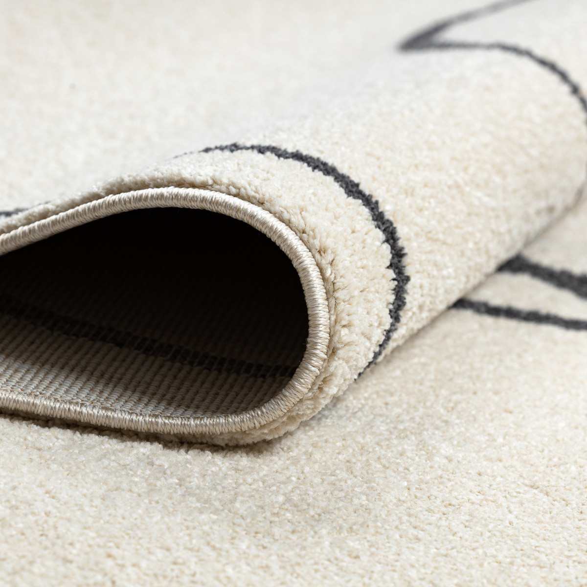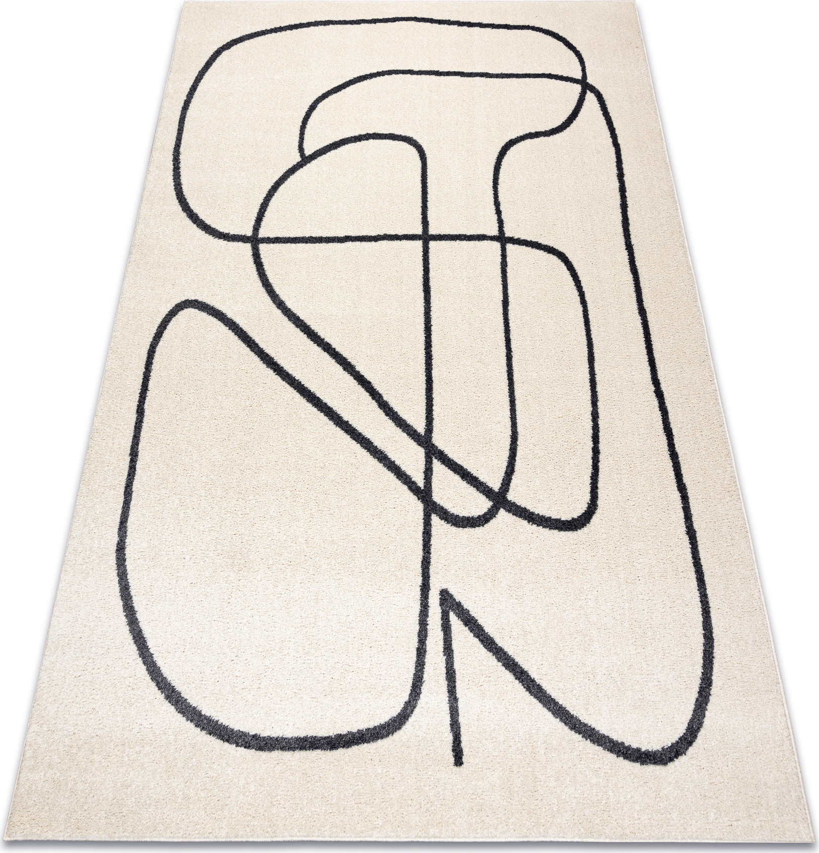 Koberec na první pohled zaujme svou jednoduchou, a přesto výraznou estetikou. Krémově světlý podklad působí čistě a jemně, zatímco černá abstraktní linie, která se volně klikatí po celé ploše, dodává koberci moderní a umělecký charakter. Díky střiženému polypropylenovému vlasu je povrch hebký a příjemný na dotek, zároveň snadno udržovatelný a odolný vůči běžnému opotřebení. Koberec je pečlivě obšitý po celém obvodu, takže si dlouhodobě zachovává svůj elegantní vzhled. Hodí se zejména do moderně laděných interiérů, kde dokáže vytvořit originální atmosféru a stát se nepřehlédnutelným designovým prvkem. Výška vlasu: 10 mm.