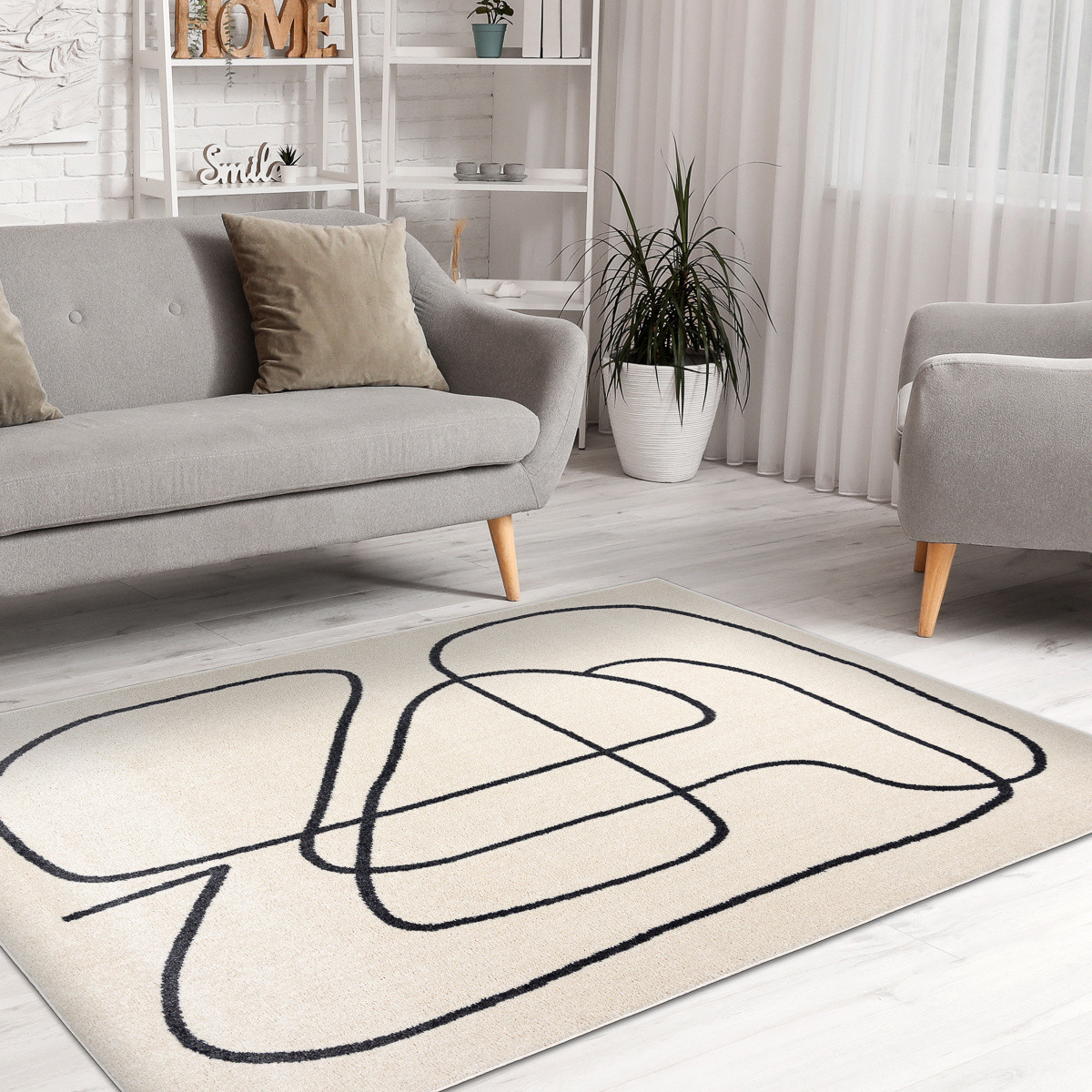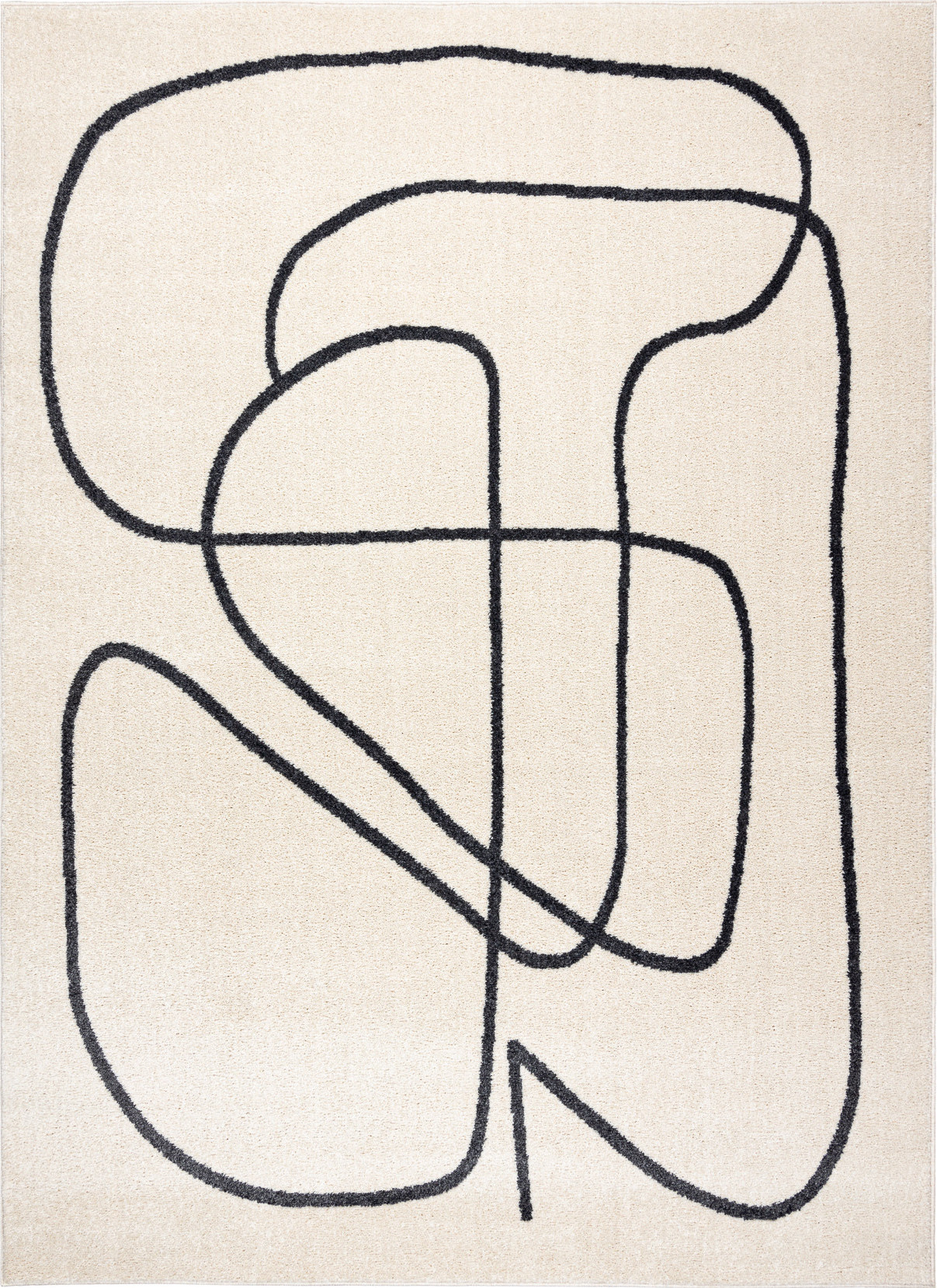 Koberec na první pohled zaujme svou jednoduchou, a přesto výraznou estetikou. Krémově světlý podklad působí čistě a jemně, zatímco černá abstraktní linie, která se volně klikatí po celé ploše, dodává koberci moderní a umělecký charakter. Díky střiženému polypropylenovému vlasu je povrch hebký a příjemný na dotek, zároveň snadno udržovatelný a odolný vůči běžnému opotřebení. Koberec je pečlivě obšitý po celém obvodu, takže si dlouhodobě zachovává svůj elegantní vzhled. Hodí se zejména do moderně laděných interiérů, kde dokáže vytvořit originální atmosféru a stát se nepřehlédnutelným designovým prvkem. Výška vlasu: 10 mm.