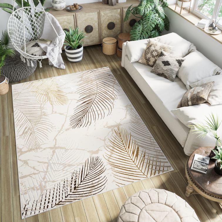 Kusový koberec GOLDEN Feathers - krémový/hnědý/zlatý