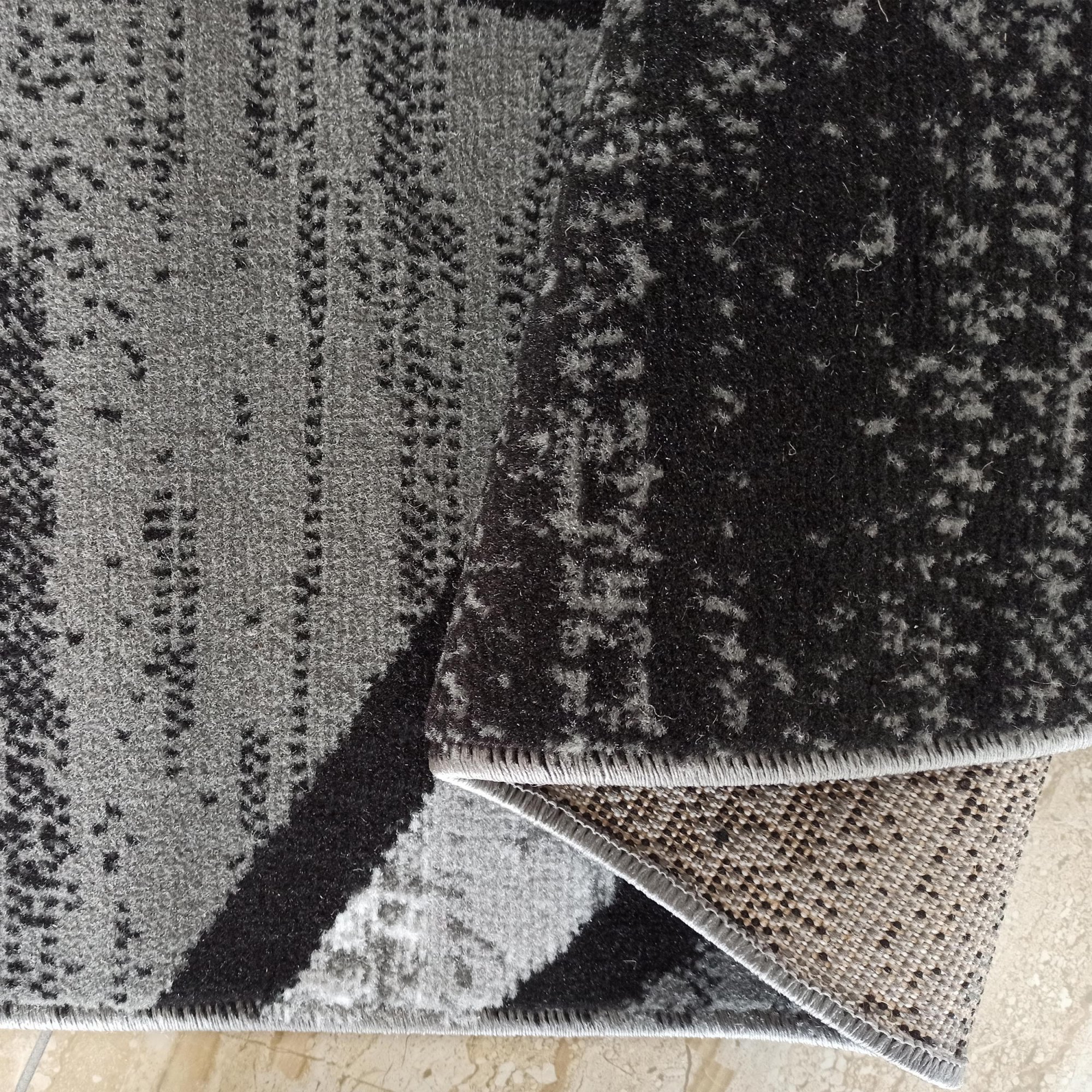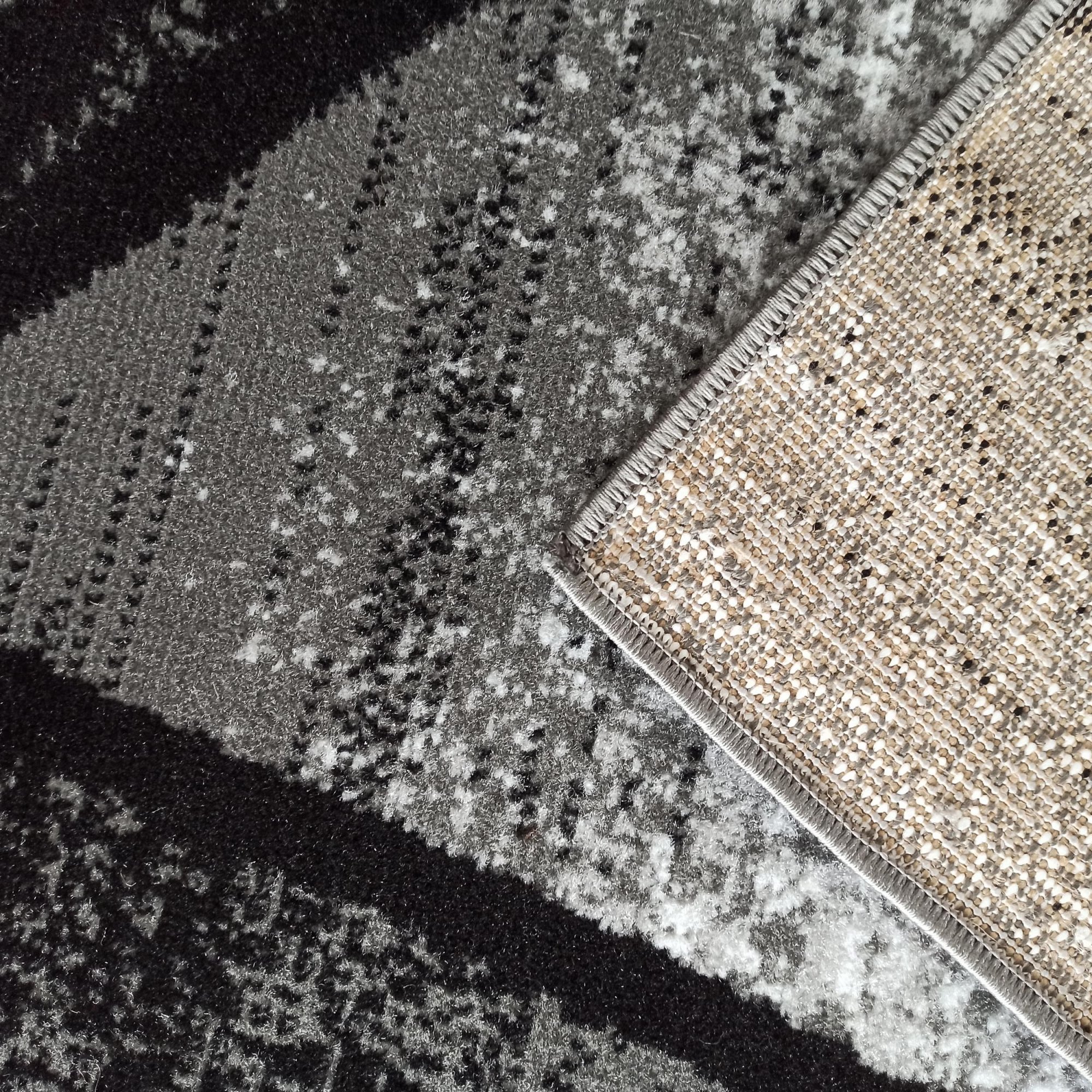 Koberec HASTE představuje moderní důkaz, že geometrický design zůstává vždy trendy. Jeho tmavá barva kombinující černou barvu s šedými odstíny z něj činí idelání doplněk do moderních obývacích pokojů, ložnic nebo stylových pokojů pro mladé. Vyrábí se z prvotřídních materiálů, které mu dodávají odolnost vůči ztrátě barvy a deformacím. Jeho vlasová struktura je vysoká přibližně 9 mm a je vyrobena s polypropylenu s úpravou vlákna BFC, což jej činí jemnějším na dotek a má syté kontrastní barvy. Díky těmto vlastnostem se snadno udržuje v čistotě – stačí ho vysát a případné skvrny odstranit vlhkým hadříkem.