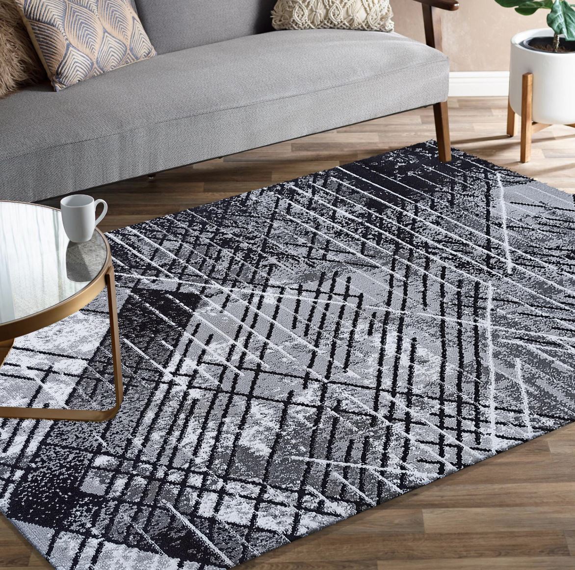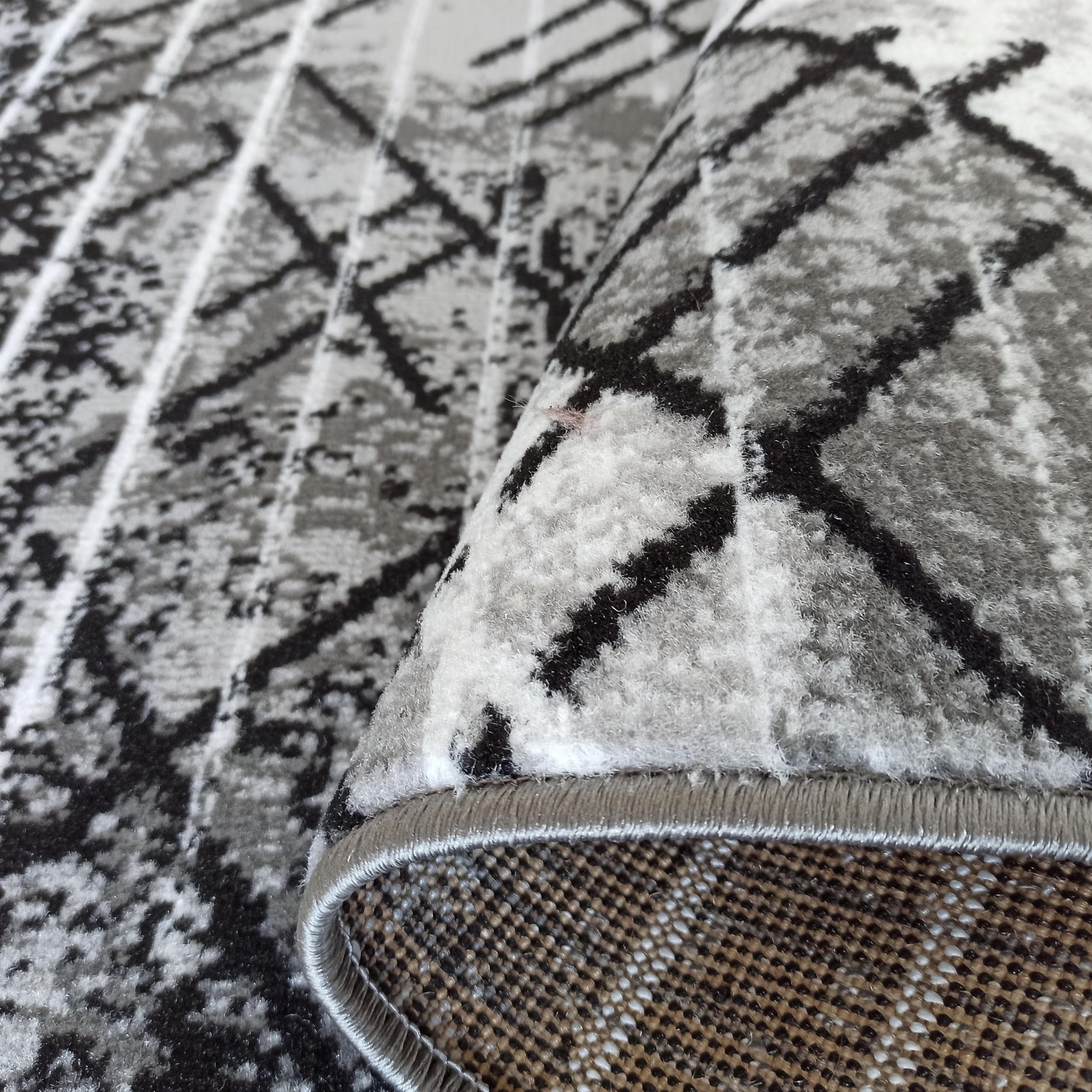 Tento moderní koberec se zajímavým vzorem v šedé, krémové a černé barvě je skvělou volbou jako koberec do ložnice, pracovny nebo do obývacího pokoje a pokoje pro mládež. Skvěle se bude hodit do interiérů v glamour nebo moderním stylu. Koberec Haste byl vyroben z vysoce kvalitních materiálů, které zaručují odolnost vůči změnám barvy, deformaci a procesům oděru. Kromě toho se také snadno udržuje v čistotě.