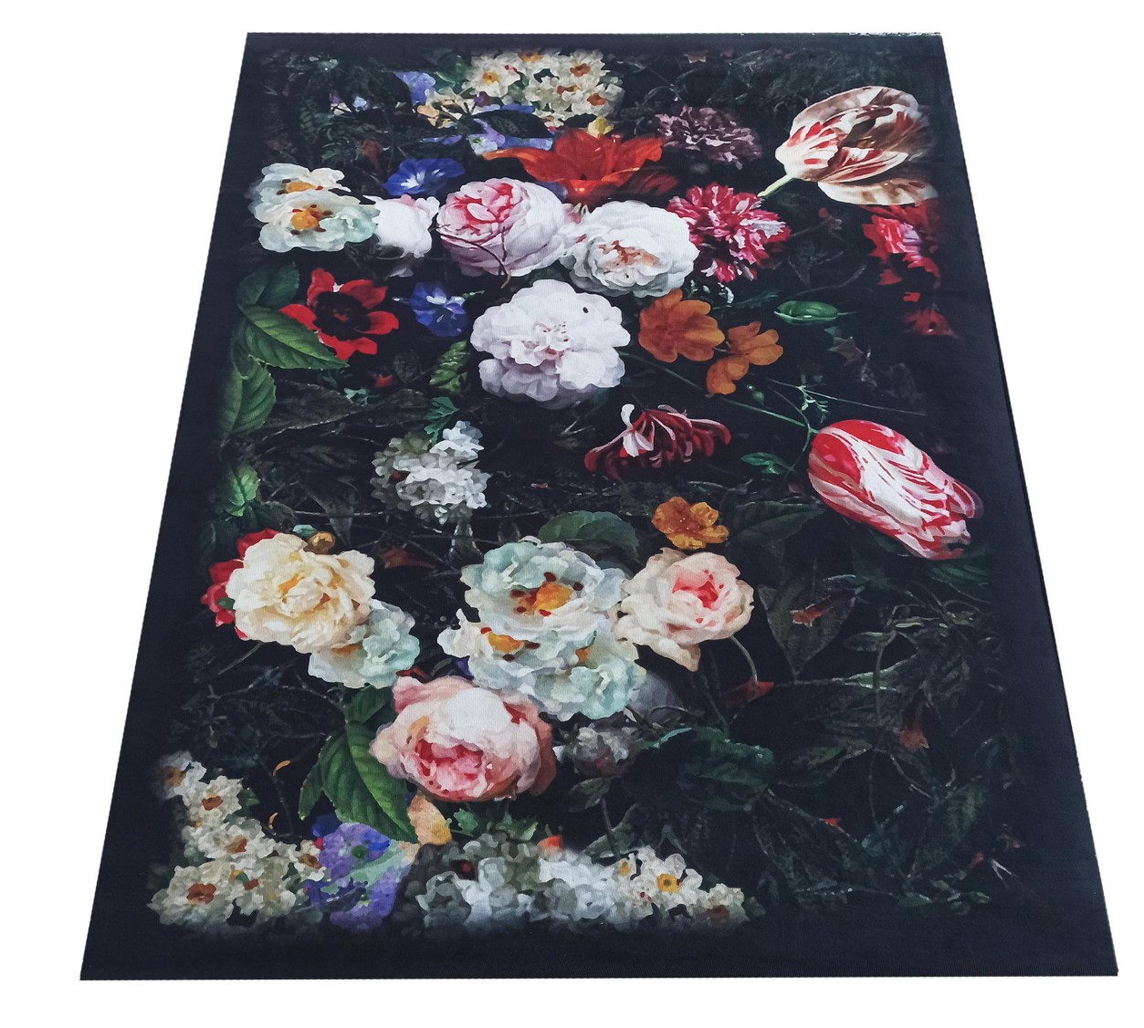 Černý moderní koberec s malovaným motivem květin vypadá jako skutečné umělecké dílo! Vyberte si ho, pokud hledáte koberec do obývacího pokoje, ložnice, jídelny nebo kuchyně, který bude výrazný a skutečně jedinečný. Tento model se dále vyznačuje kvalitním zpracováním, odolností a protiskluzovým podkladem. Růže, tulipány, pivoňky, narcisy - květinový vzor zaujme svým realistickým ztvárněním jako z obrazů renesančních mistrů. Tento efekt ještě umocňuje decentní černý podklad. Tohle je koberec pro milovníky dobrého designu! Bude dokonalým doplňkem obývacího pokoje v klasickém, glamour nebo moderním stylu. Pokud jej zkombinujete s dřevěným nábytkem a tkanými doplňky, vytvoříte krásný boho interiér.