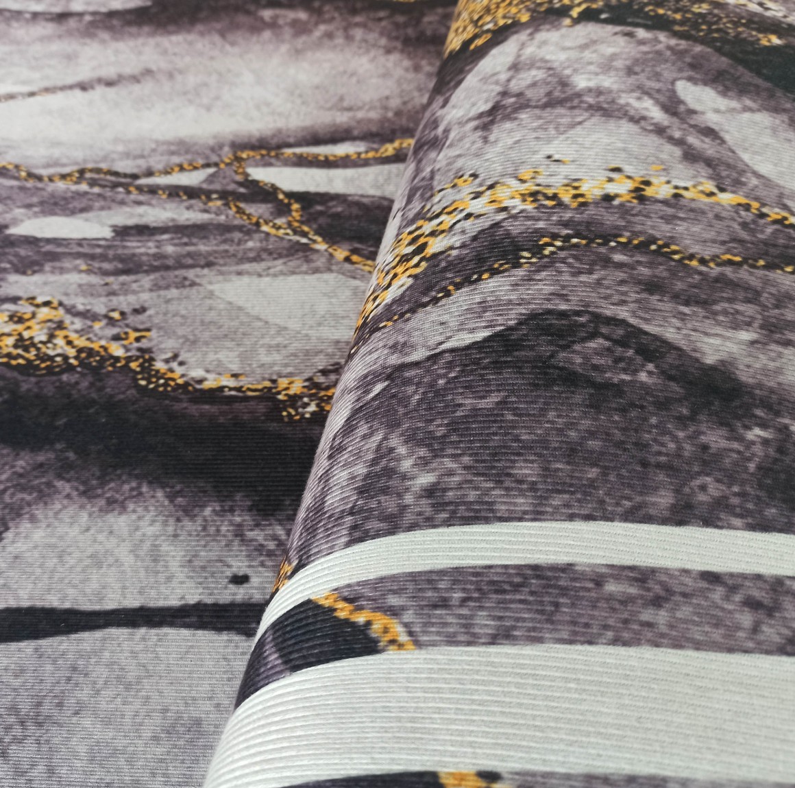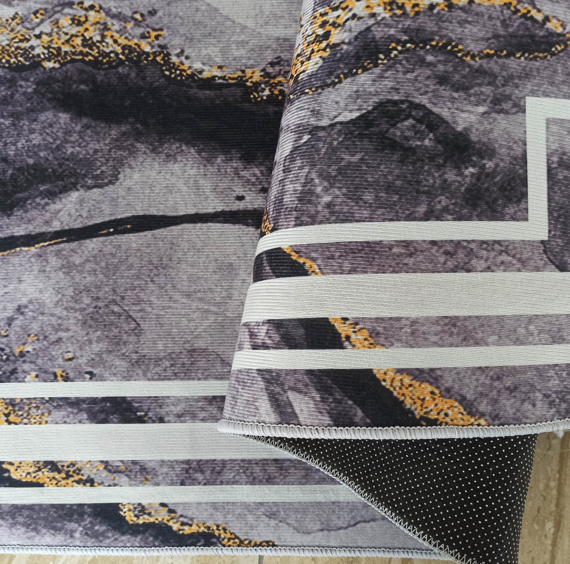 Tmavě šedý moderní koberec s velmi módním vzorem inspirovaným kresbou kamene. Sytě šedé a zlaté akcenty mu dodávají jedinečný, elegantní charakter. Koberec HONOR Rock skvěle doplní každý interiér, ať už klasický, nebo moderní. Je stvořen i pro stylový obývací pokoj, ale najde si cestu i do krásné ložnice nebo reprezentativní jídelny. Zlatě zvýrazněné "polstrování" a geometrické linie jsou receptem na útulný, harmonický a poutavý interiér. Koberec má protiskluzový podklad, takže neklouže po podlaze a můžete ho snadno položit na panely, desky nebo keramickou dlažbu. Je vyroben z kvalitního polyesteru - je trvanlivý, odolný vůči mechanickému poškození a lze jej prát na 30 stupňů. Svůj krásný vzhled si zachová po velmi dlouhou dobu. Nebude měnit barvu ani se deformovat.