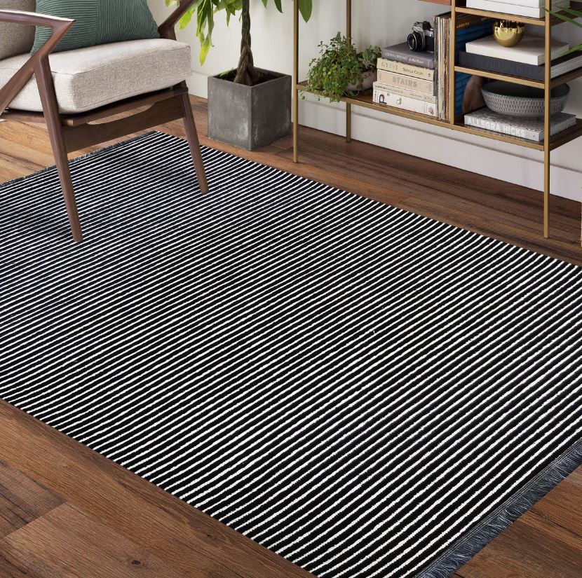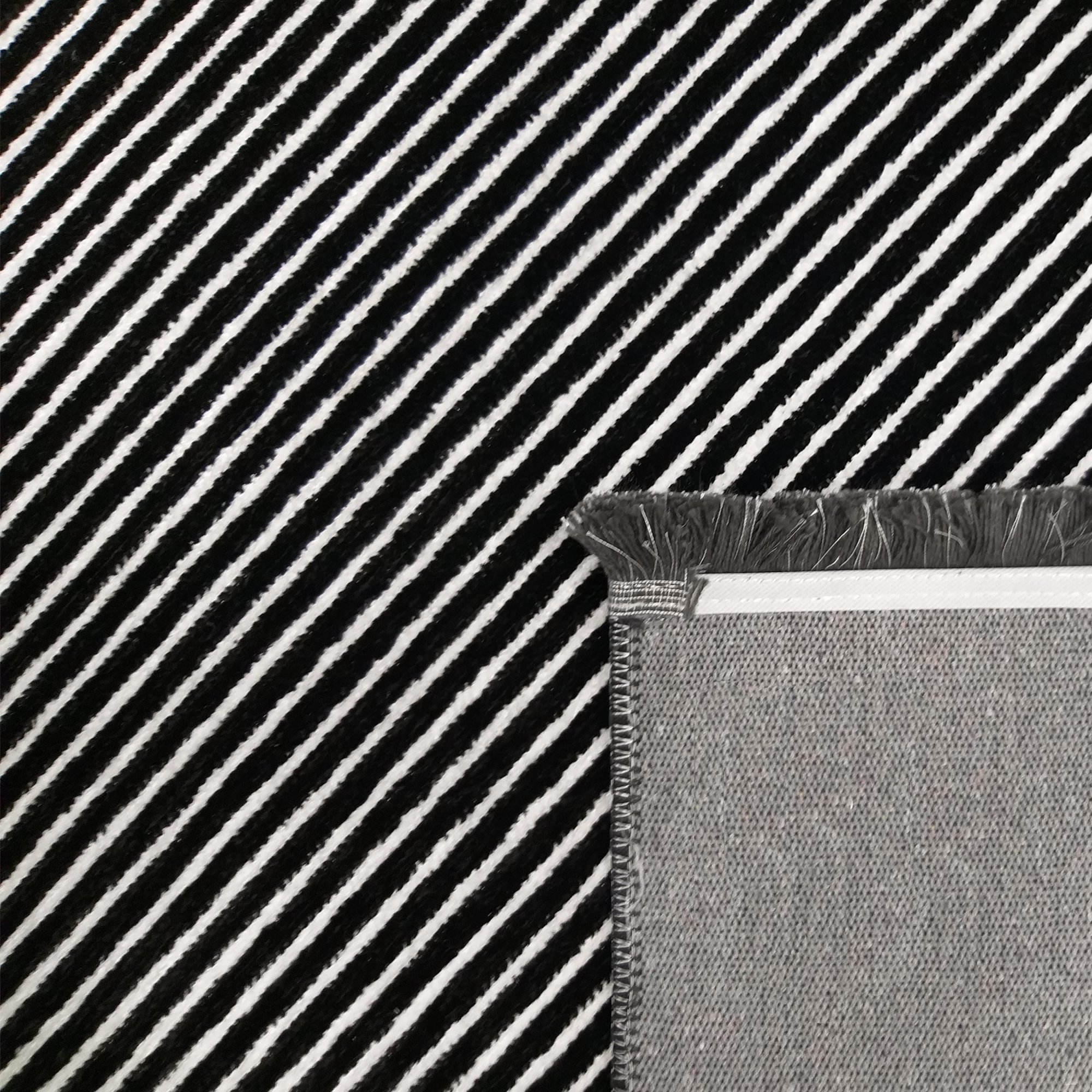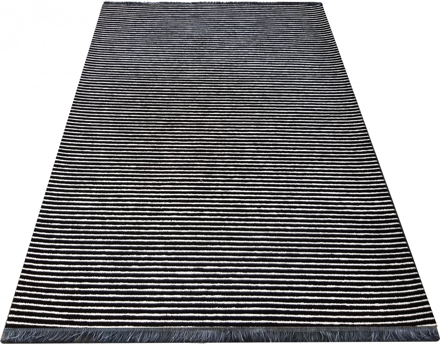 Moderní koberec z kolekce MONDO má univerzální design podtržený módními barvami. Koberec je vyroben ze 100% polyesteru, díky čemuž je odolný vůči deformaci a změně barvy. Vzor na koberci vytváří trojrozměrný efekt technikou střídání vlasu černé a bílé barvy. Koberec je vynikající volbou do obývacích pokojů, ložnic i stylových pracoven - své místo si najde v moderním i klasickém interiéru. Další výhodou je možnost praní v pračce na 30 stupňů s nastavením jemného programu. Koberec má navíc protiskluzový podklad z bavlny.