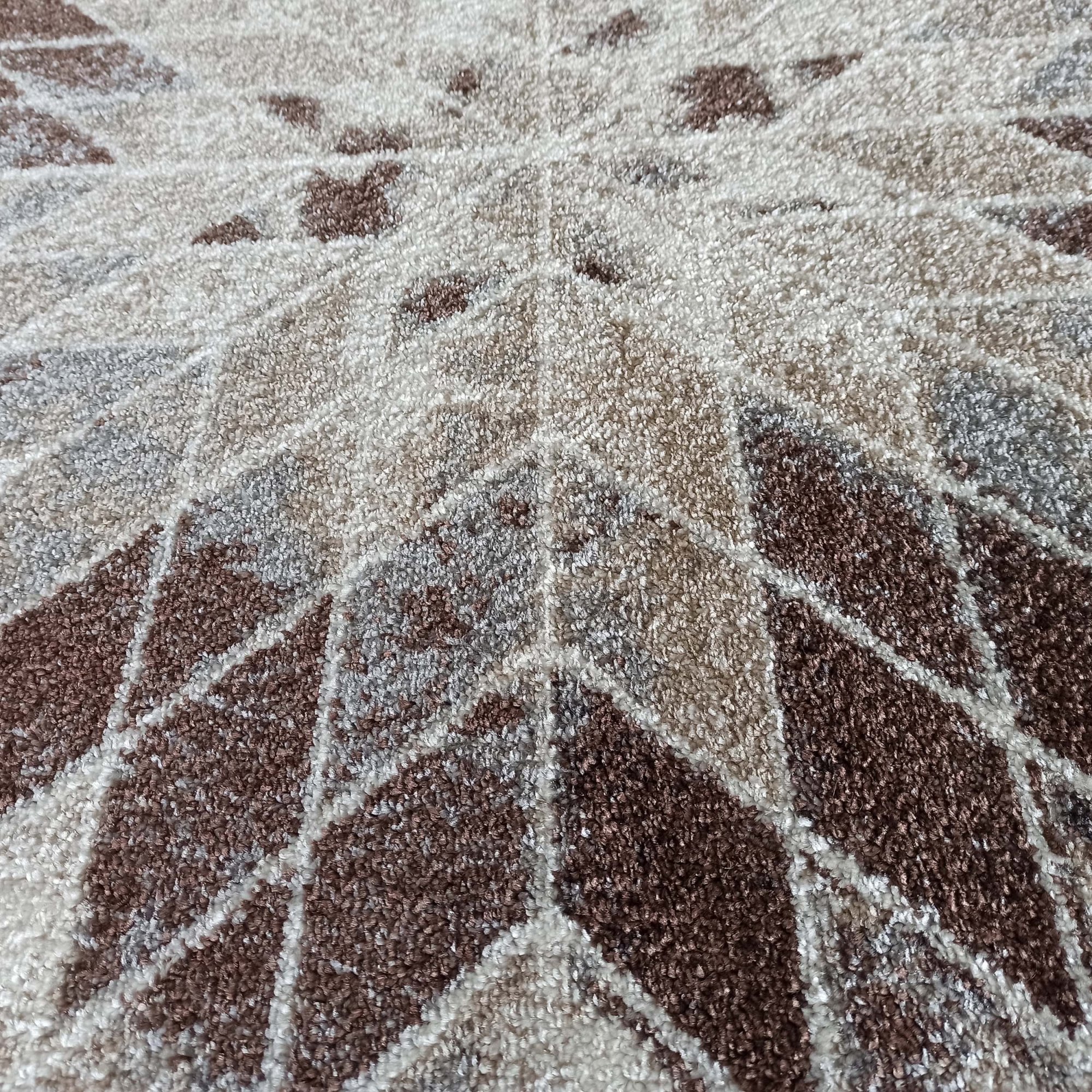 Kulatý koberce do obývacího pokoje inspirovaný přírodou v odstínech hnědé barvy dokonale uklidní a sladí interiér. Design tohoto moderního koberce báječně ladí s barvami přírody, s přírodními látkami a materiály. Vypadá dobře s podzimními barvami: zelená, žlutá, červená. Doplní také minimalistický interiér v zimních barvách (bílá, šedá), vytvoří útulnou atmosféru a pocit pohodlí. Hebkost a teplo pro nohy, příjemný dojem pro oči - to vše poskytne tento kulatý koberec z kolekce PANNE. Tento moderní koberec je vyroben z polypropylenové příze, materiálu s vynikajícími vlastnostmi: je bezpečný (nehořlavý), pružný a odolný vůči oděru. Koberec je měkký, hustý a antistatický. To vše díky použité technologii Heat Set Frise. Koberec je také vhodný pro alergiky - snadno se čistí, je odolný vůči nečistotám a alergenům.