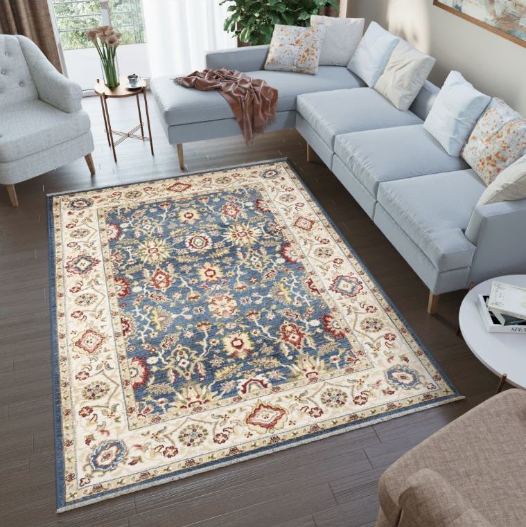 Kusový koberec RIVOLI Ushak - modrý/krémový